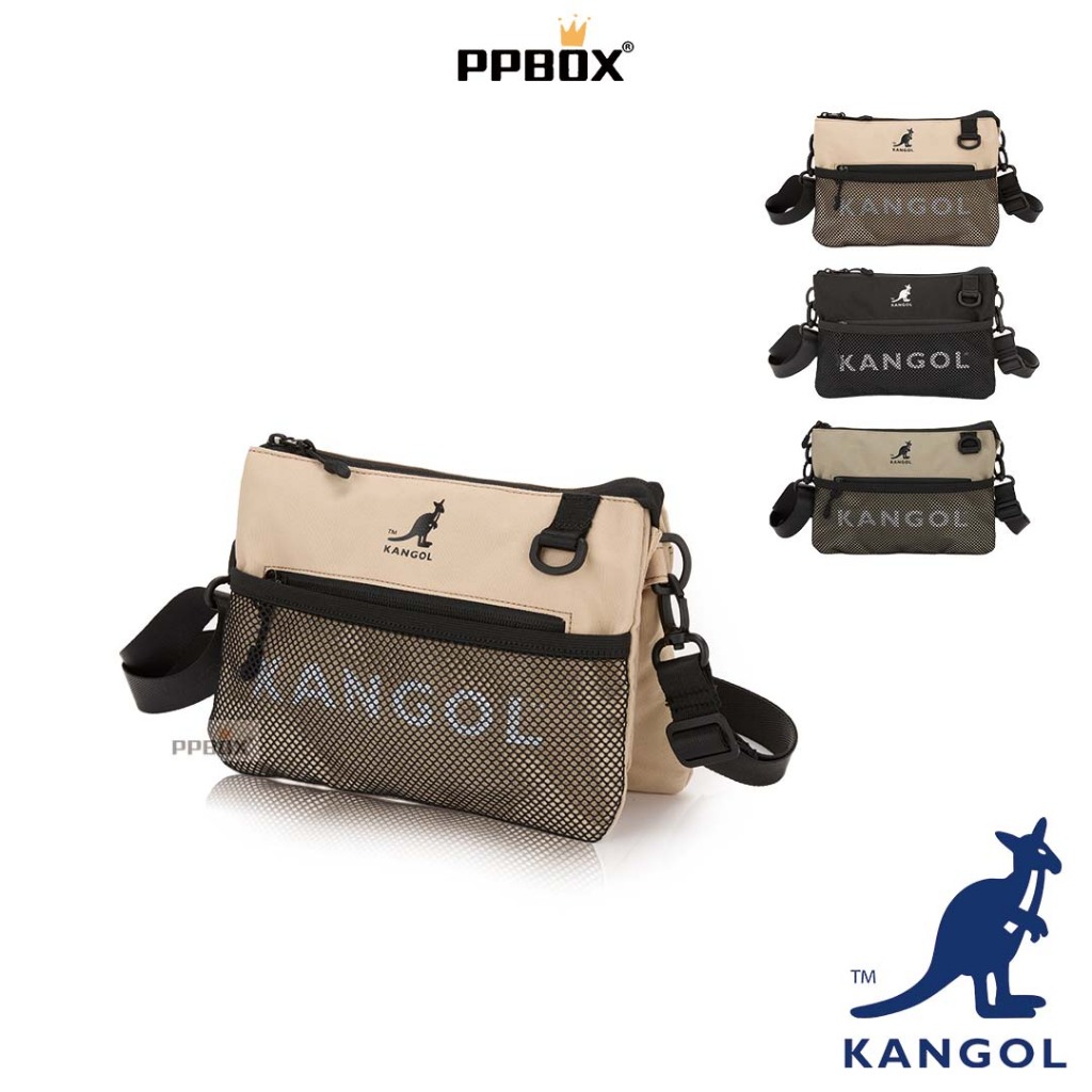 KANGOL 袋鼠 網布三層 側背包【64251703】時尚 小方包 側背包 斜背包 小側包 多格層 情人節禮物淺綠|黑色KANGOL官方授權旗艦店 – PPBOX 行李箱