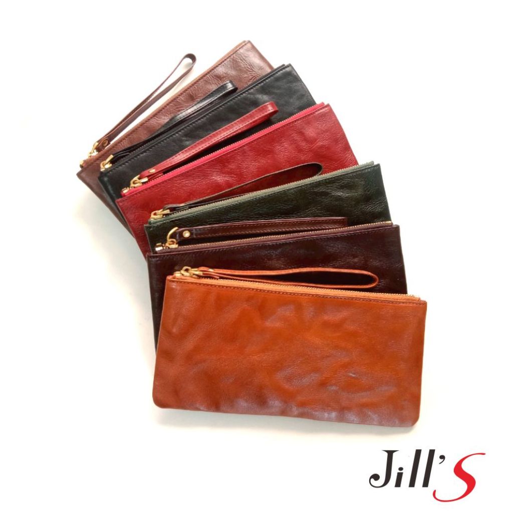 Jills 抓皺水晶植鞣輕薄手拿長夾 共六色栗色|紅色|咖色|黑色|棕色|綠色Long Walletsjill’s 質感美型包