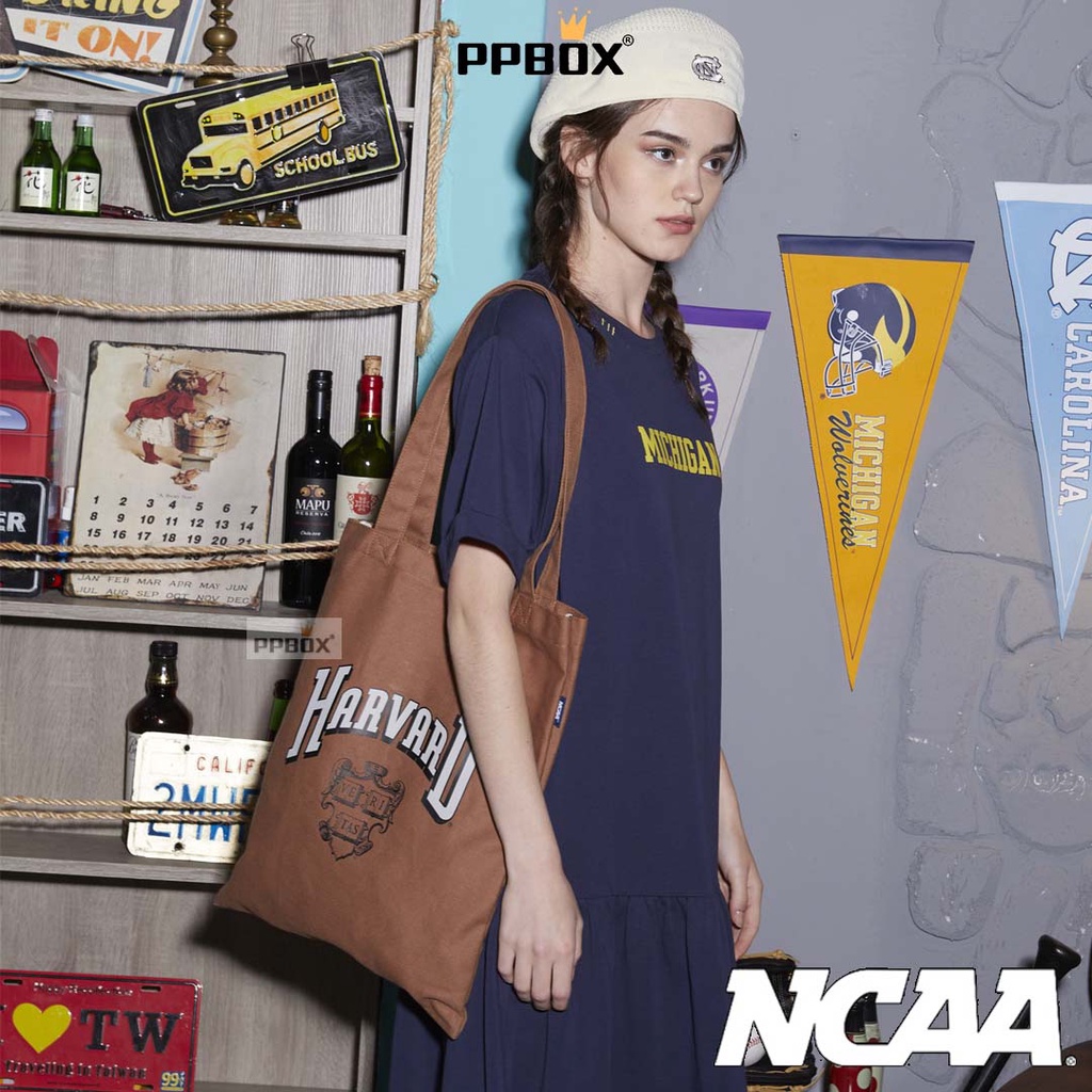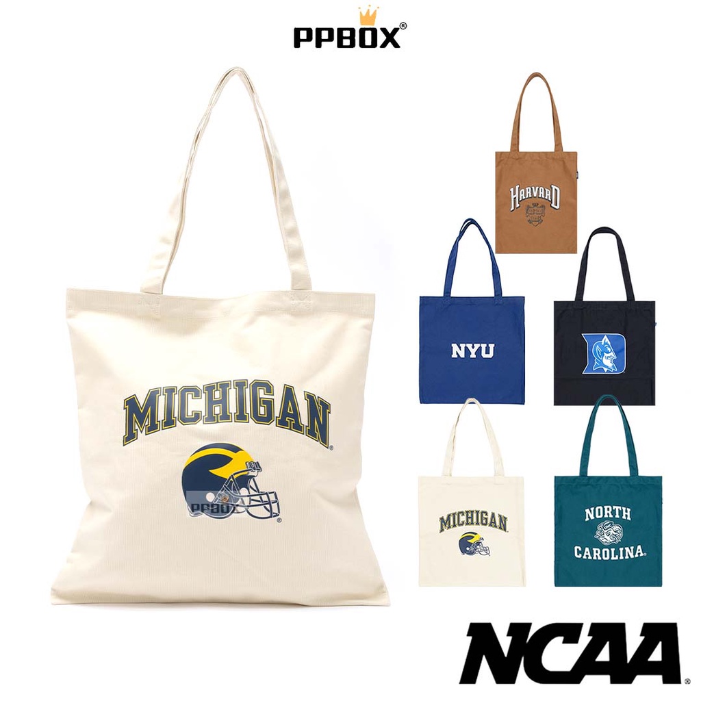 NCAA 吉祥物 大LOGO 帆布 托特包 72255705 包包 大容量 購物袋 帆布包 情人節禮物湖水綠_CAROLINA|黑色_DUKE|咖啡色_HARVARD|白色_MICHIGAN|深藍_NEW YORKKANGOL官方授權旗艦店 – PPBOX 行李箱