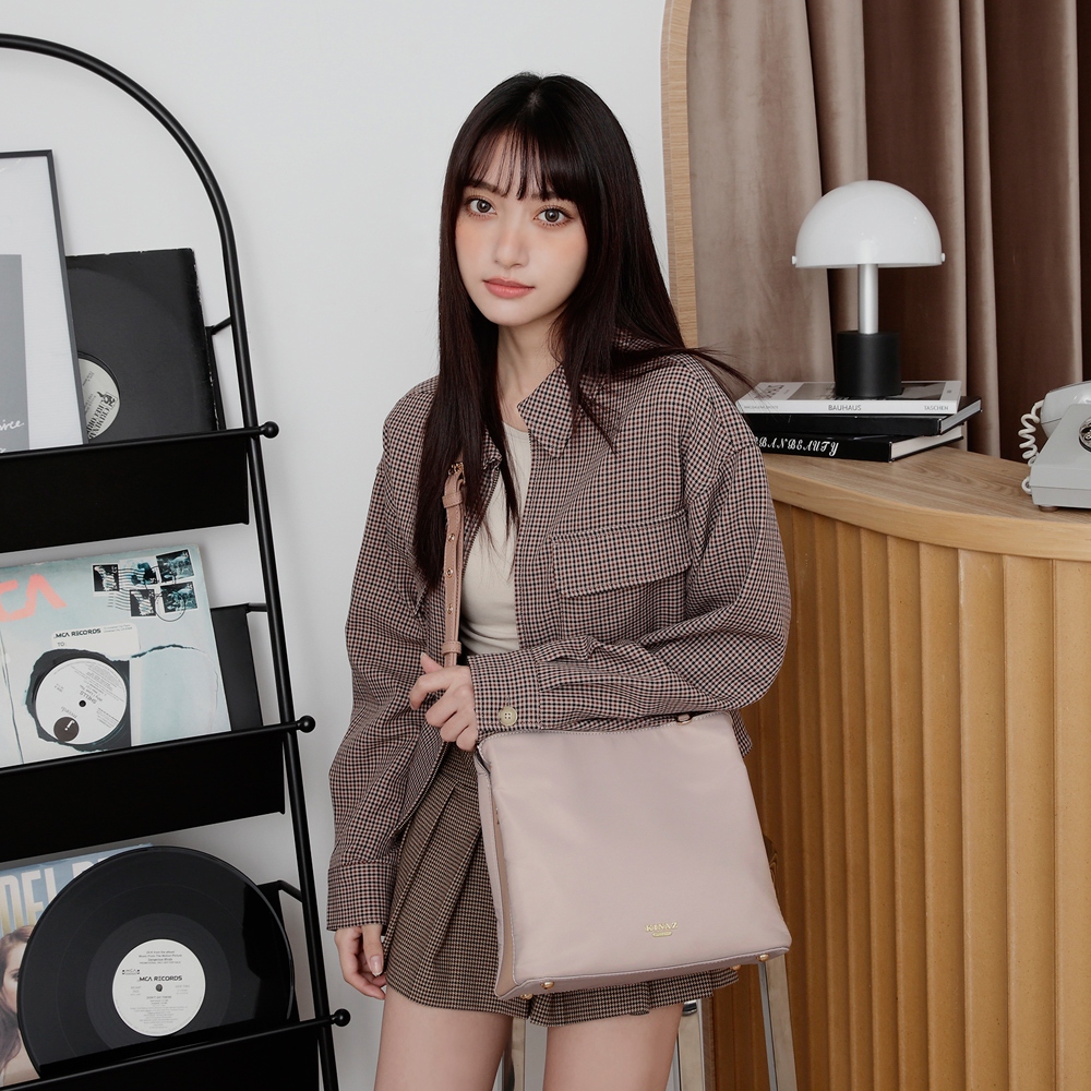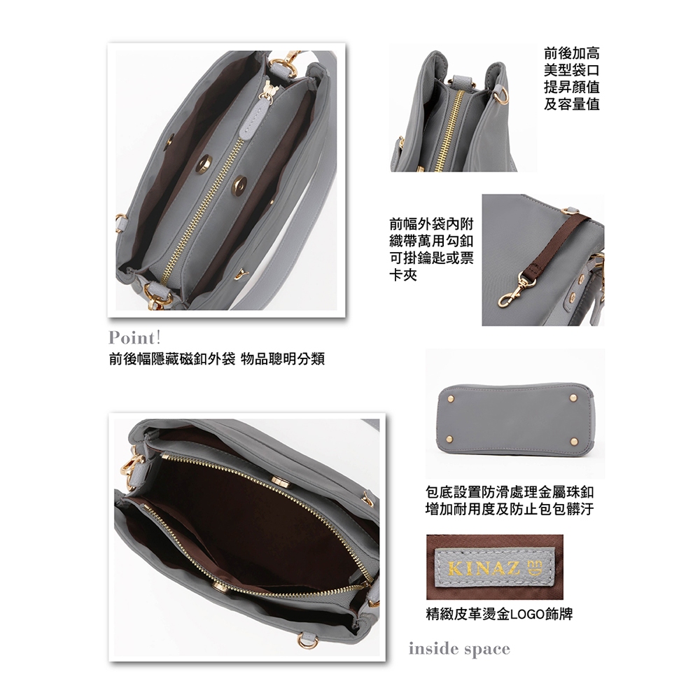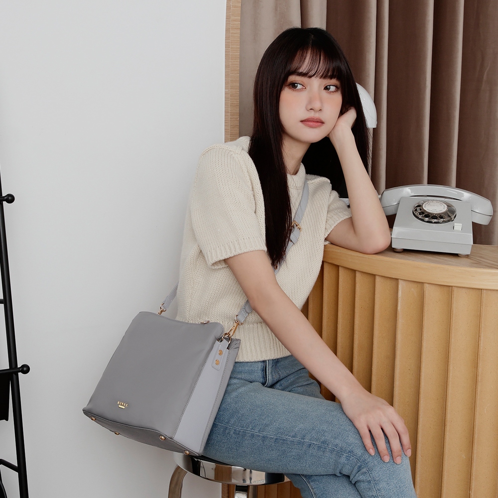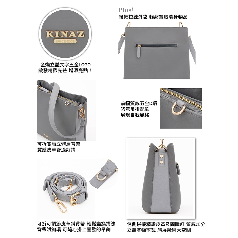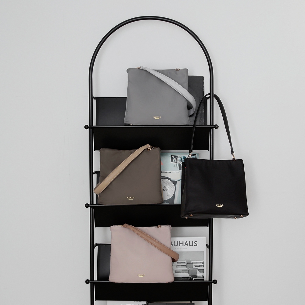 KINAZ 多層拼接皮革雙背帶肩背斜背尼龍包-企鵝系列貝殼粉|極光黑|日蝕褐|礁石灰KINAZ官方直營