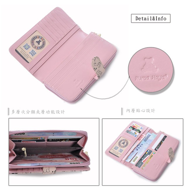 kuma heya -美國熊拉鍊釦式對開長夾-粉系kuma heya -美國熊拉鍊釦式對開長夾-粉系Long WalletsKuma Heya專櫃包(公司直營)