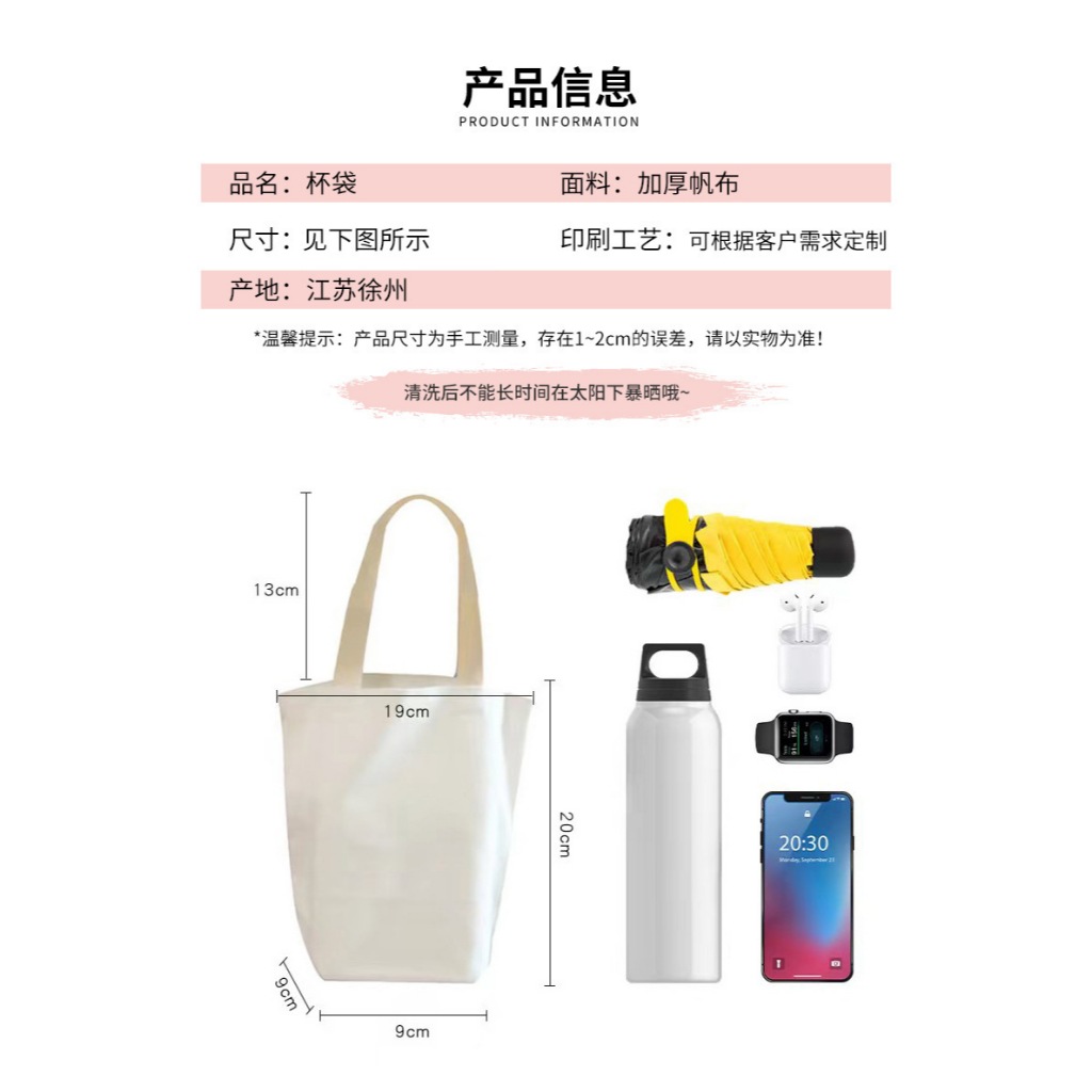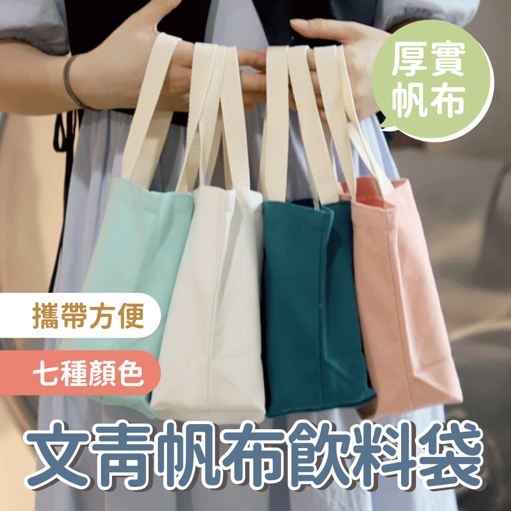 【限時免運】文青帆布飲料袋 簡約帆布包 帆布袋 雨傘袋 外出飲料袋 手拎帆布包 飲料袋誠品綠|孔雀藍|焦糖|粉紅|淺綠|淺卡其|白LOHOY品牌館
