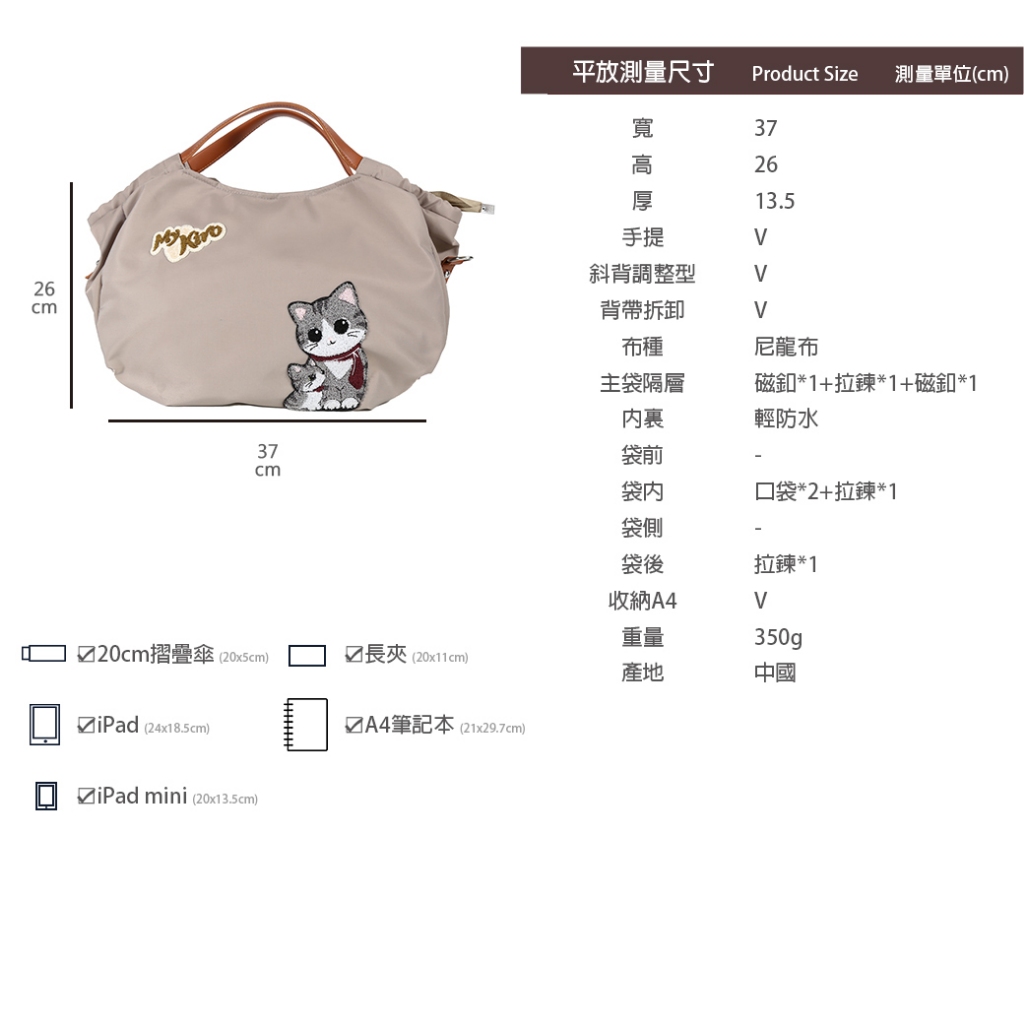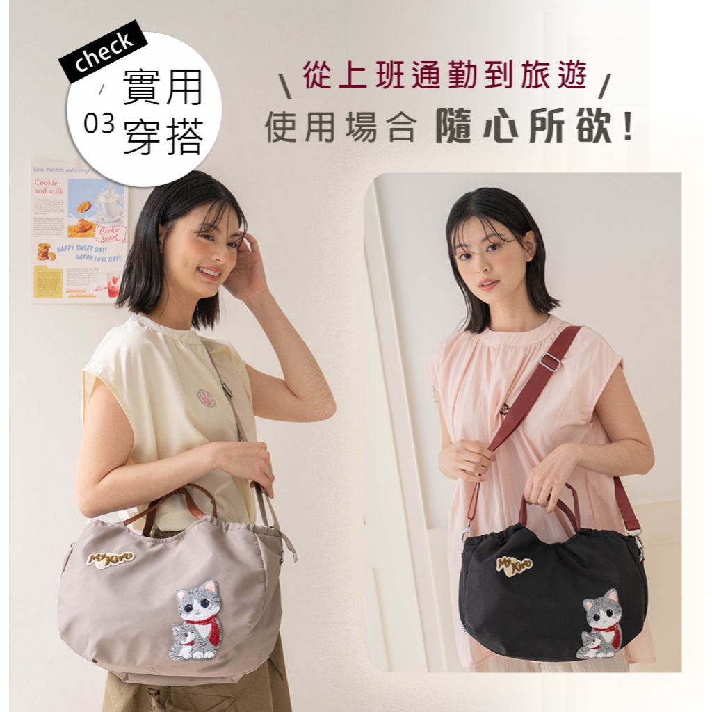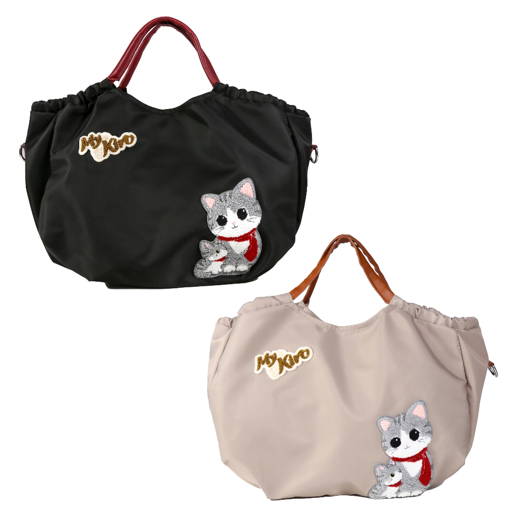 【Kiro貓】大泡芙包 母子貓 毛巾繡 手提/斜背包【330071】可可灰|經典黑Kiro貓 官方旗艦店
