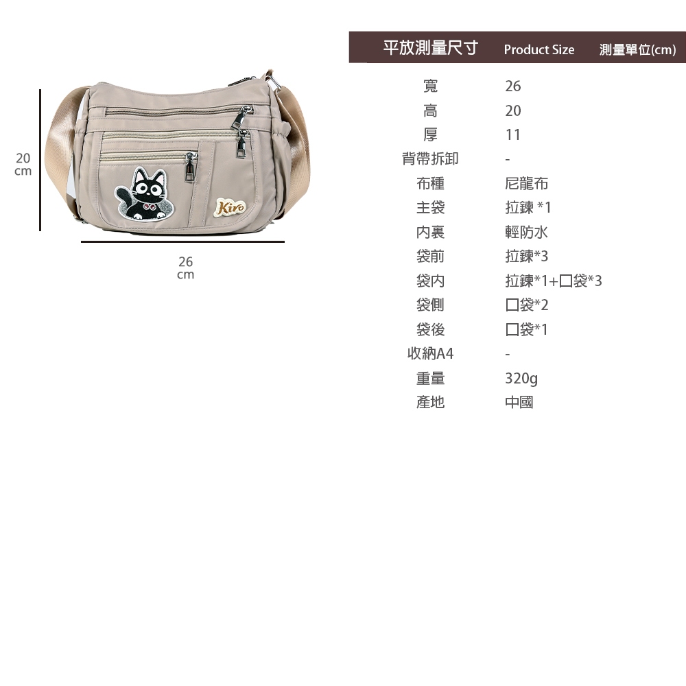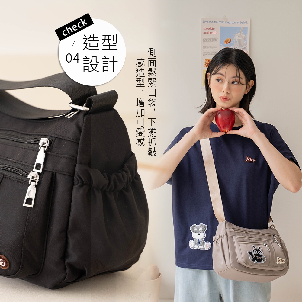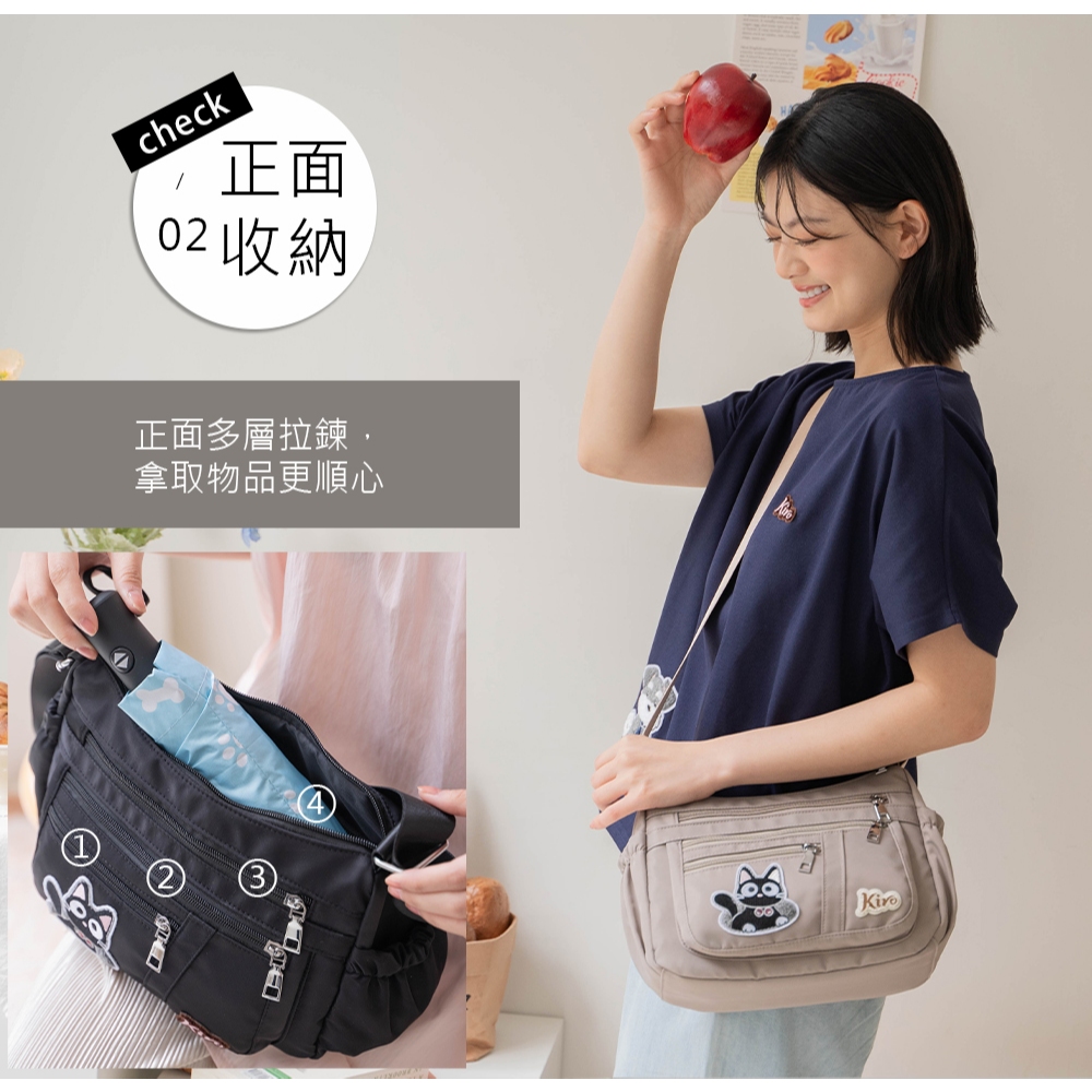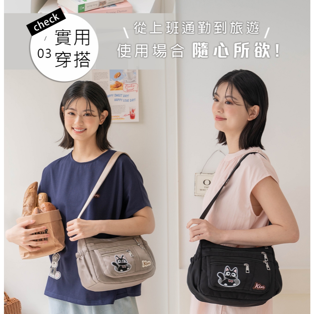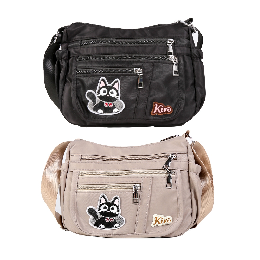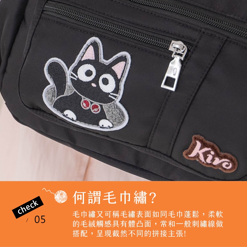 【Kiro貓】寶袋包 小黑貓 毛巾繡 輕防水 多層斜背包【330073】可可灰|經典黑Kiro貓 官方旗艦店
