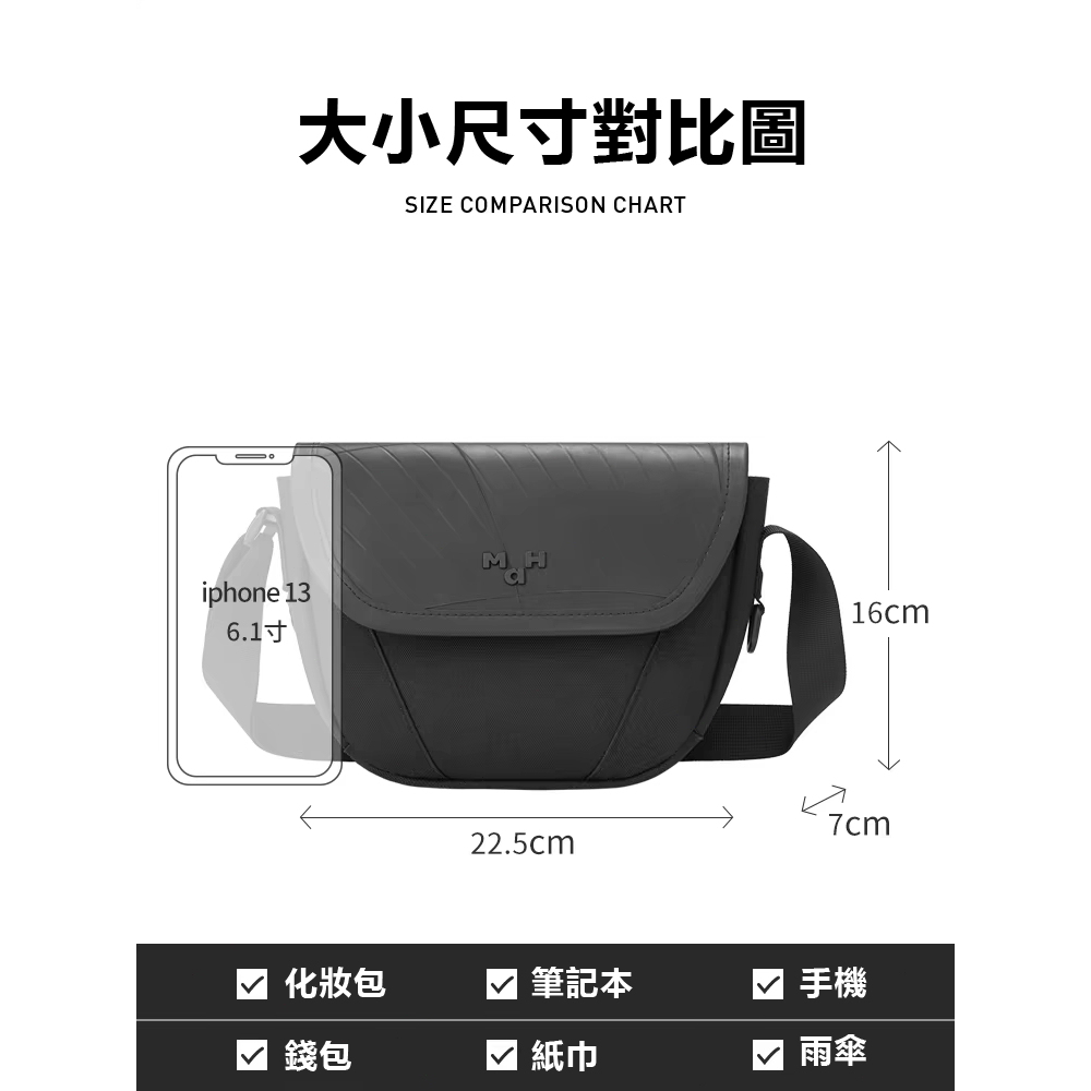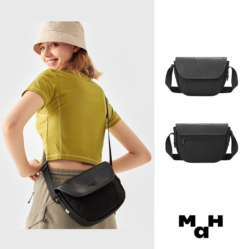 【MAH環保系列】MAH 原創斜背包 日系小衆單肩包 女包 男包 運動休閒通勤包包小眾潮酷單肩包男 防潑水黑曜石(現貨)MaH 台灣官方旗艦館