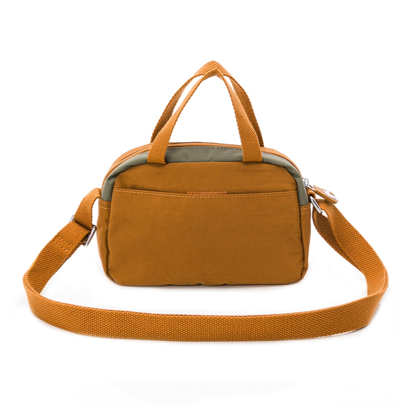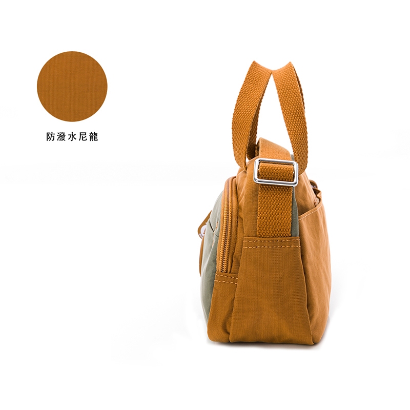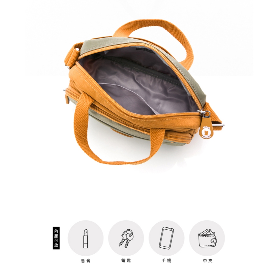 KINAZ 拼接皮革軟織帶輕量尼龍多層手提斜背小方包-小黑貓系列栗子糖|淡奶油|夜霧黑KINAZ官方直營