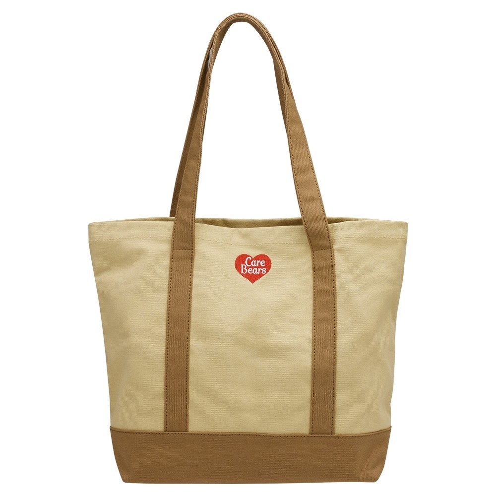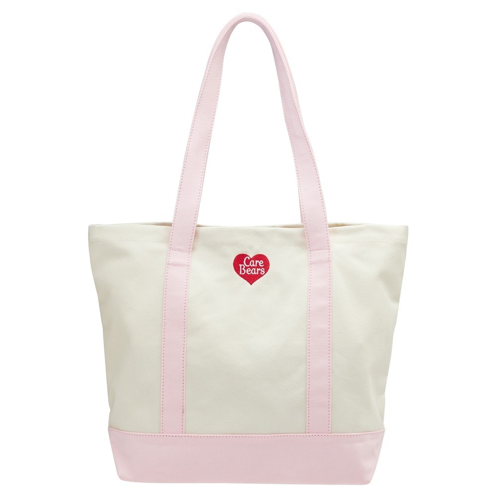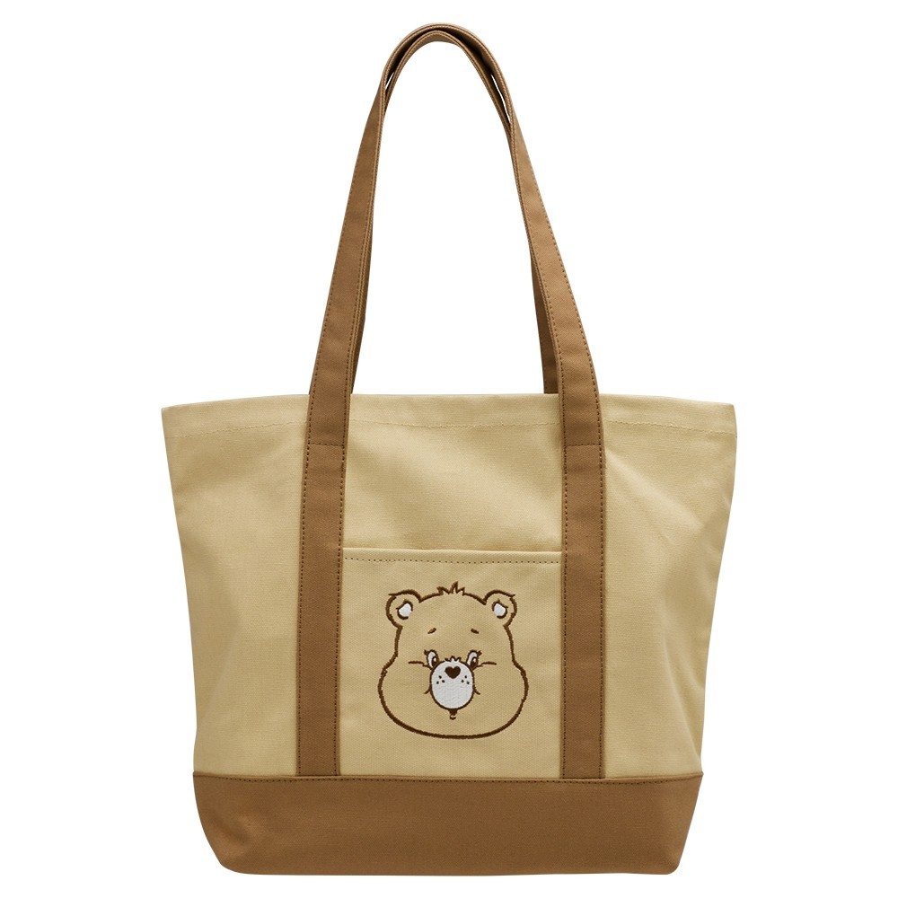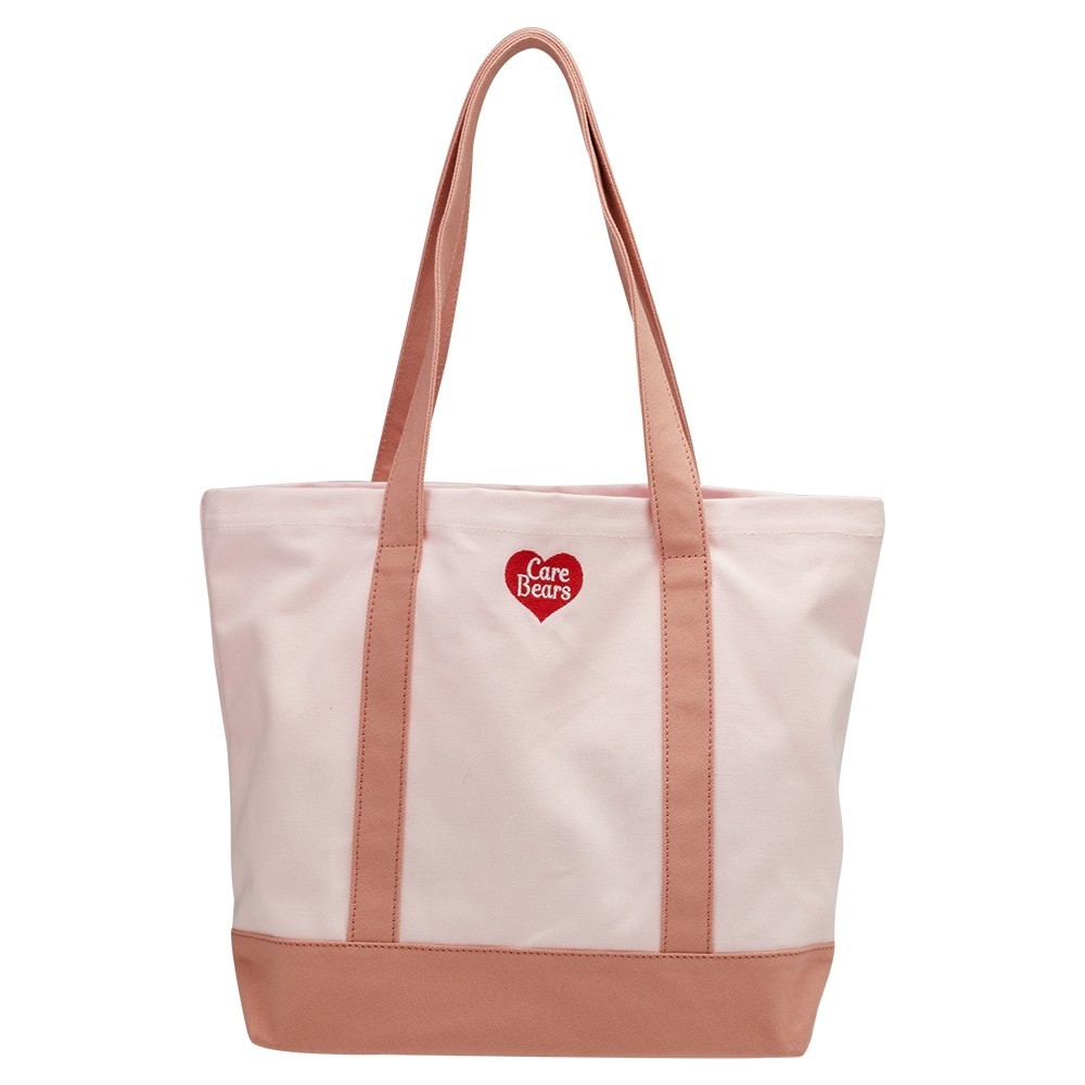 【Grace Gift】帆布袋【CareBears-溫柔小熊/鑽石/分享/樂觀撞色口袋肩背帆布旅行袋】4色 旅行袋粉紅|米白|淺駝|紫Grace gift 正式官方旗艦店
