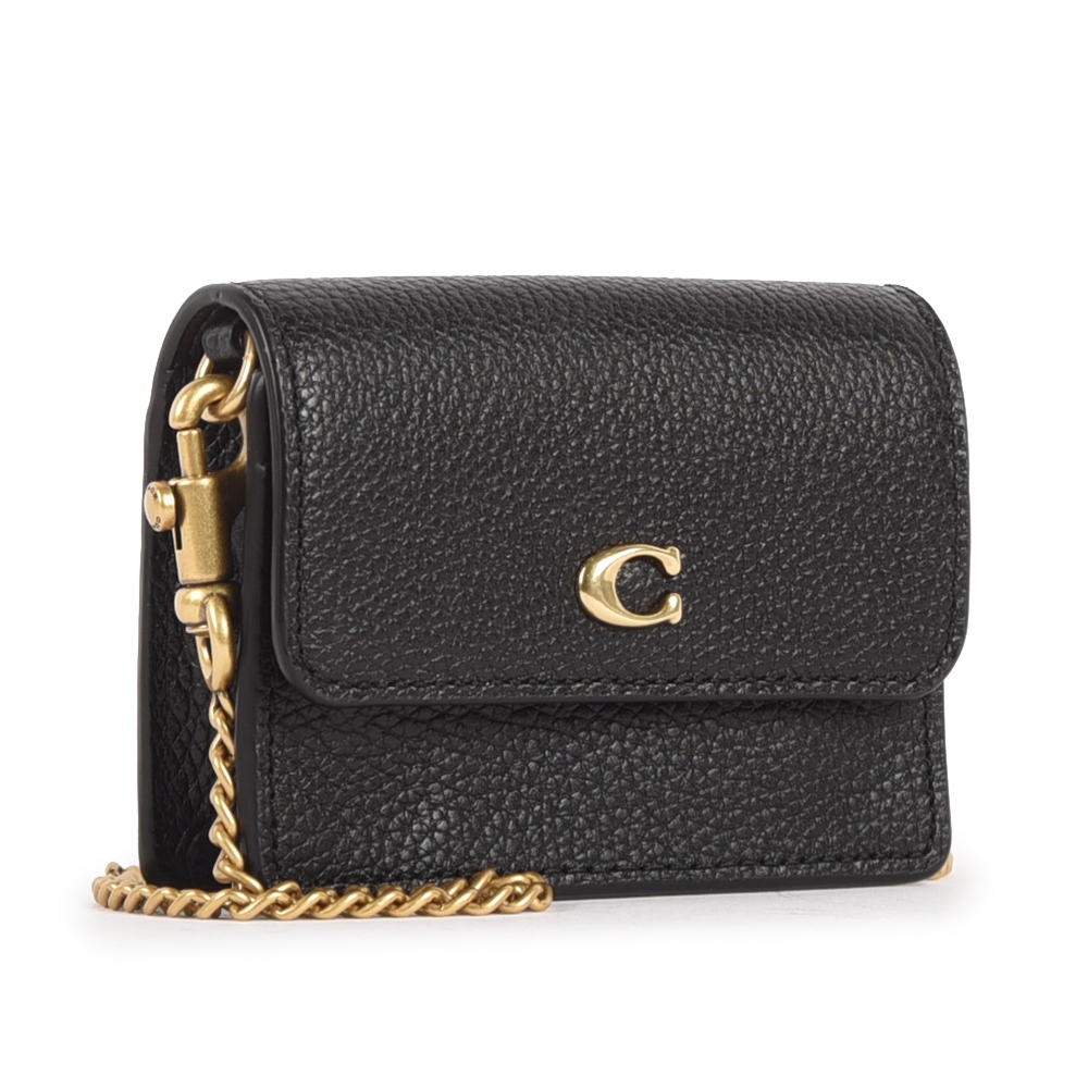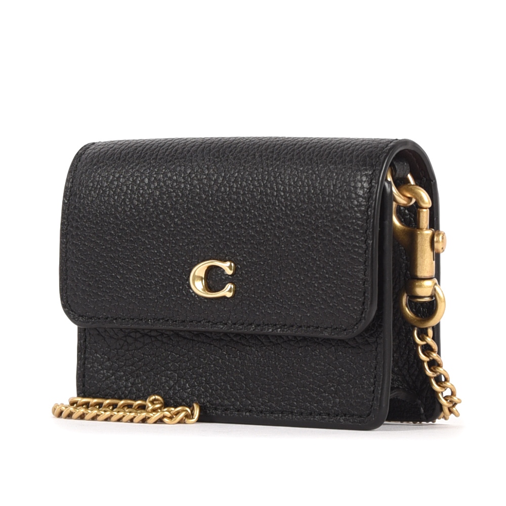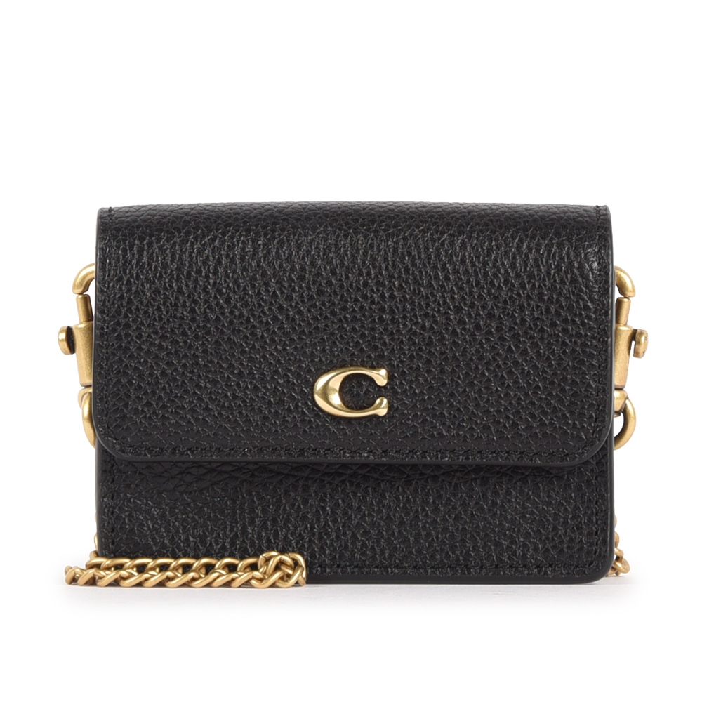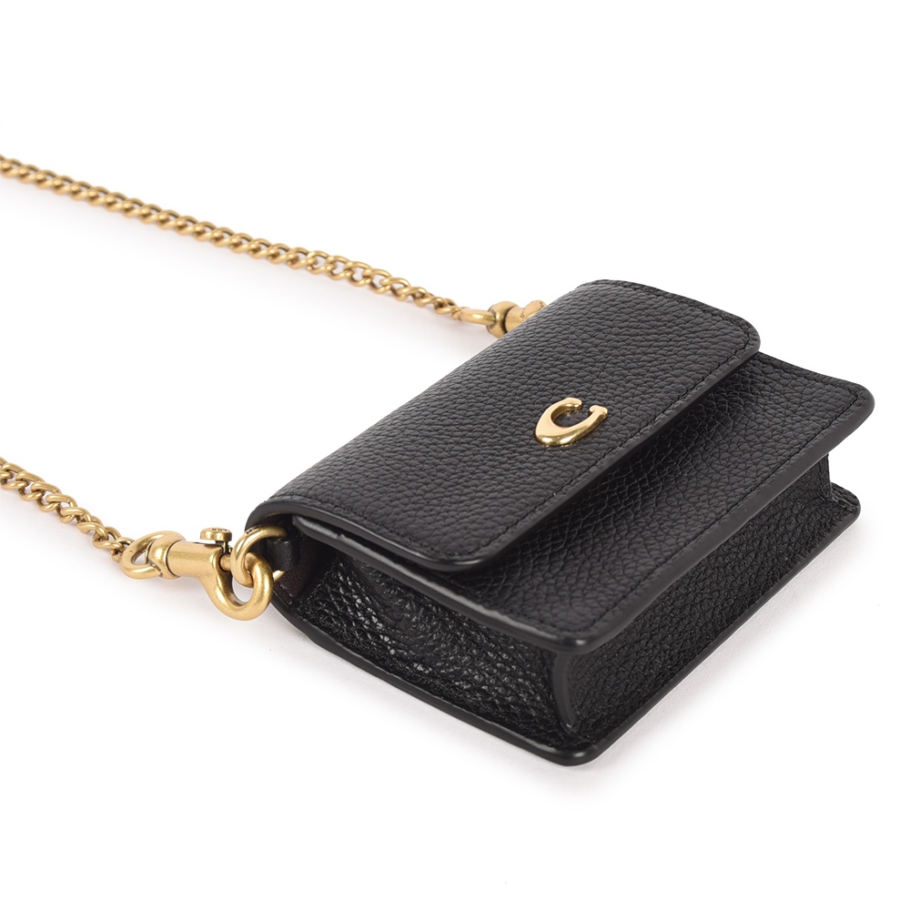 COACH金屬C字粒紋皮革迷你斜背鏈帶卡包(黑色)194815|GoBrand購名牌COACH金屬C字粒紋皮革迷你斜背鏈帶卡包(黑色)194815|GoBrand購名牌GoBrand購名牌精品網