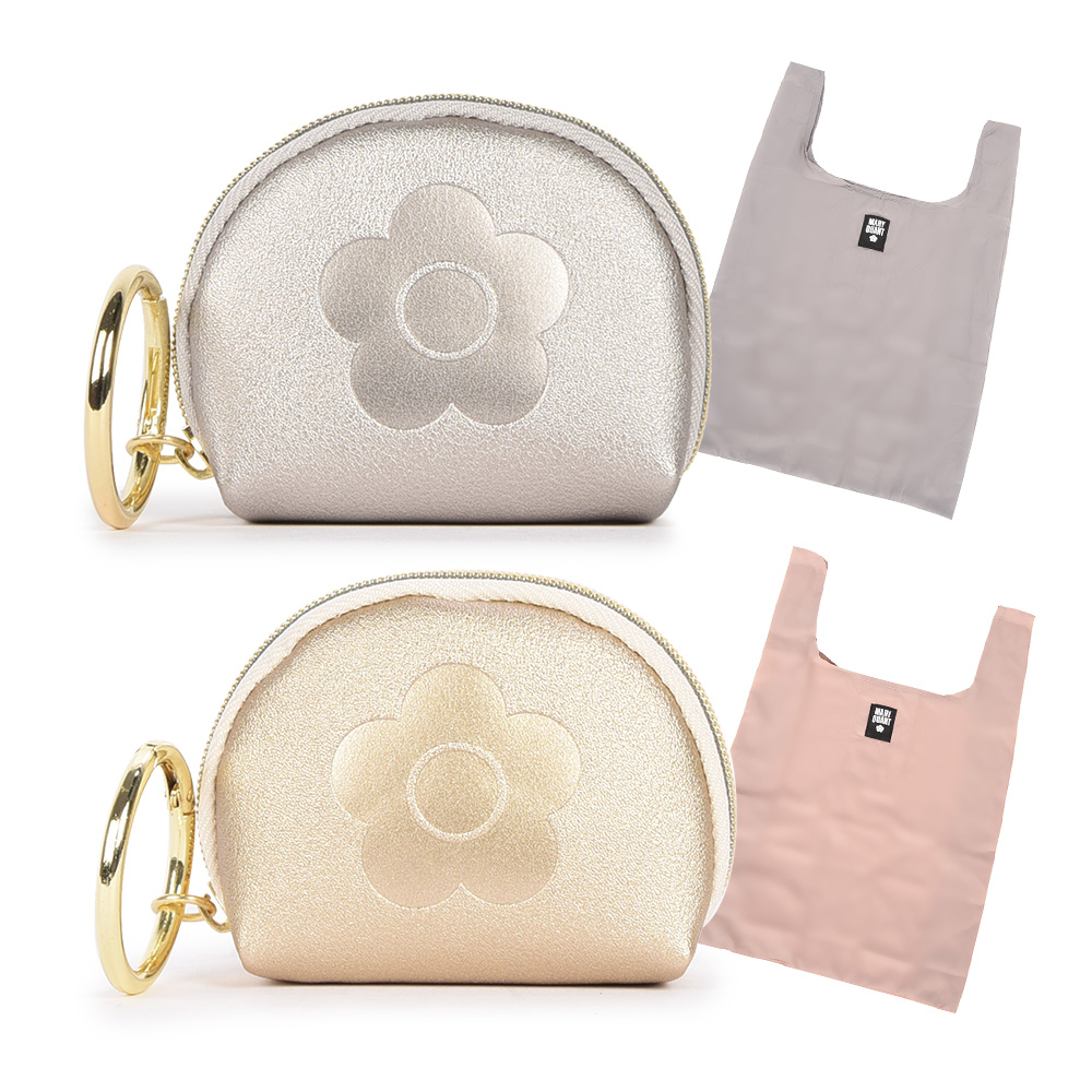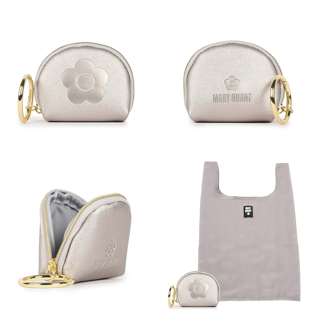 MARY QUANT雛菊小花壓印拉鍊零錢包/附環保購物袋(任選)000754金/粉色|銀/灰色Coin Holders & PursesGoBrand購名牌精品網