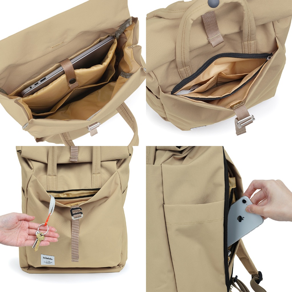 Hellolulu 環保系列KACY多功能後背包(M) 淺卡其 寶石藍 黑 可裝14吋筆電