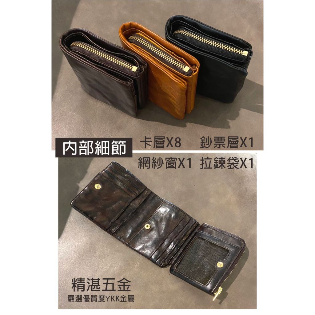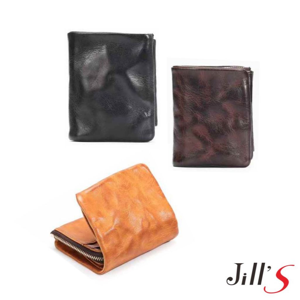 Jills 植鞣皮革弗列德抓皺感三折短夾 共三色皮感棕|典藏咖|經典黑Bifold & Trifold Walletsjill’s 質感美型包