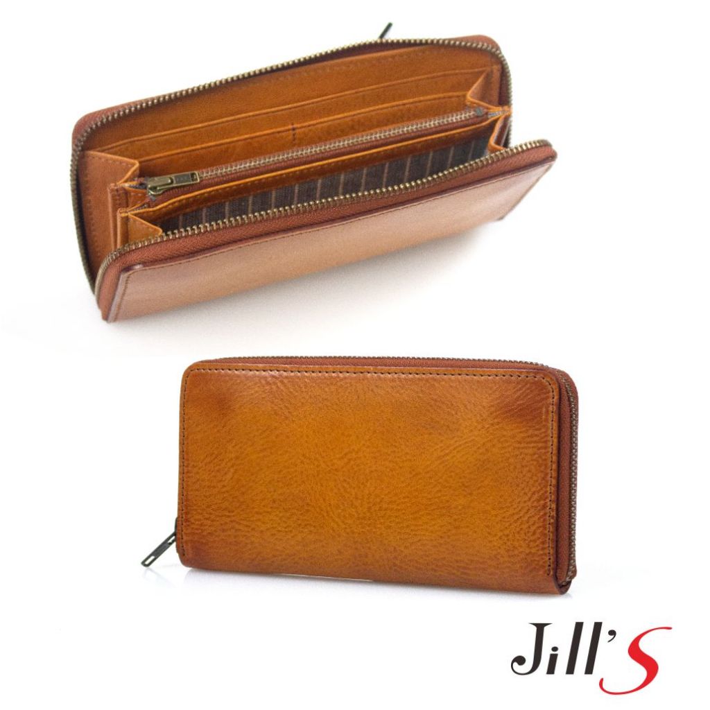 Jills 植鞣皮革尼爾森ㄇ型拉鍊長夾 共三色咖啡色|時尚黑|皮感棕Long Walletsjill’s 質感美型包