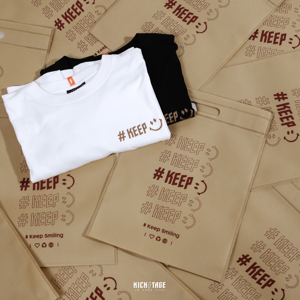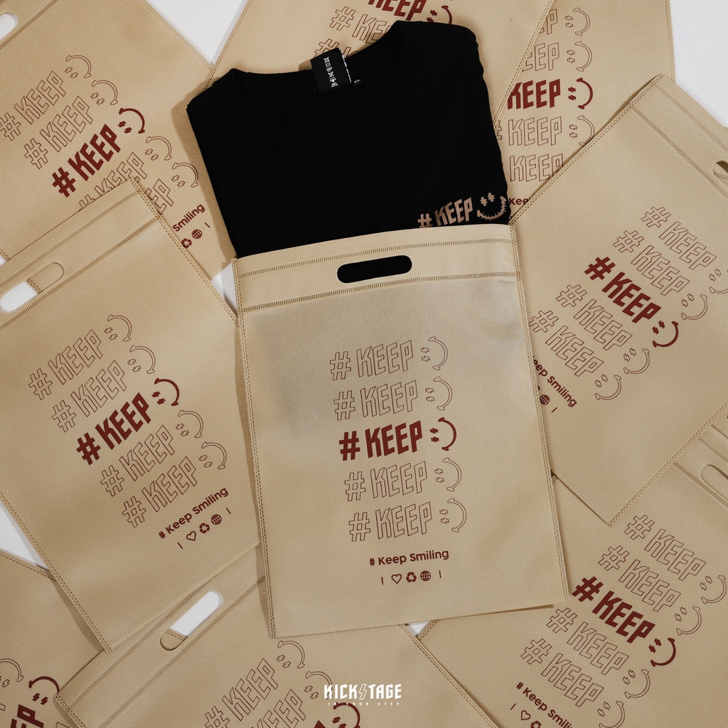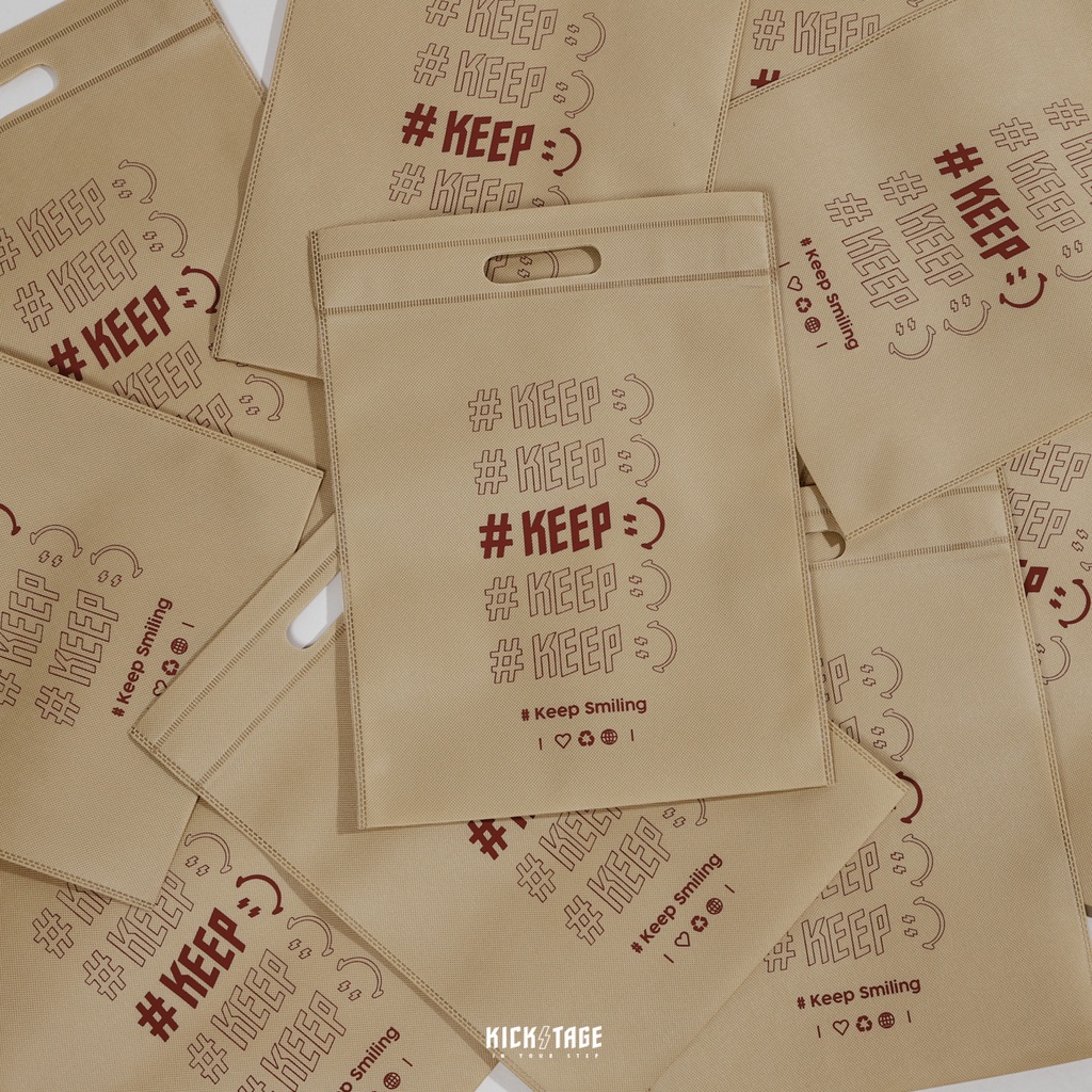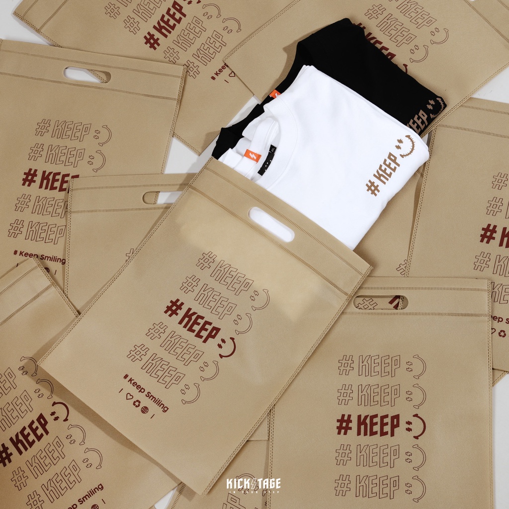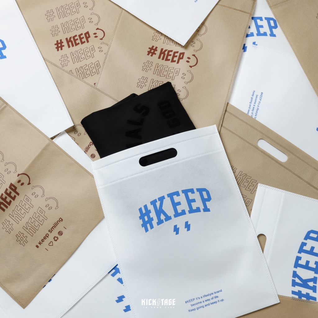 #KEEP SHOPPING BAG 白色 卡其色 閃電微笑 串標 手提 防塵布織購物袋 環保袋 收納袋【KS124】卡其色【KS124】|白色【KS124-WH】KICKSTAGE奇時代橘