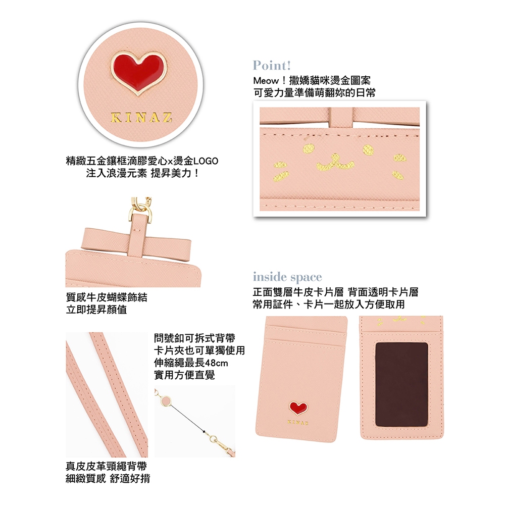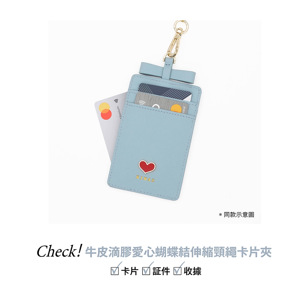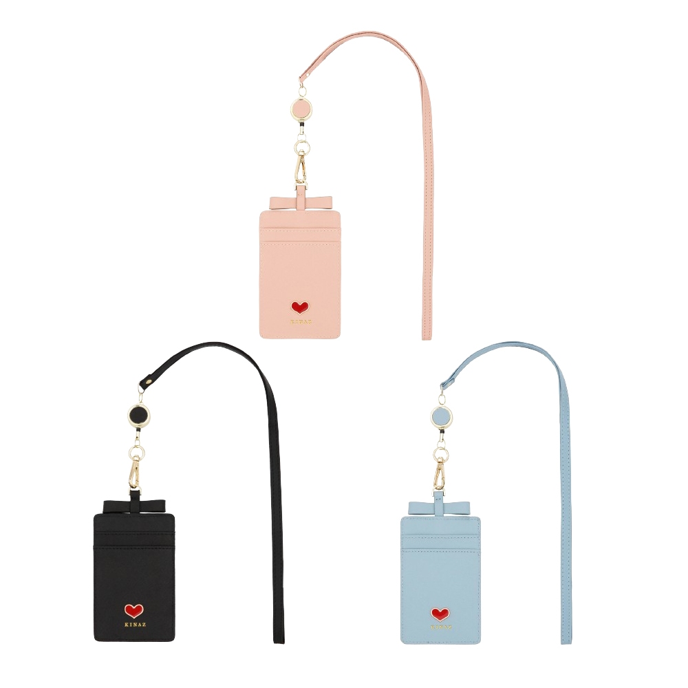 KINAZ 牛皮愛心鑲飾蝴蝶結伸縮頸繩票卡夾-喵星人系列茱萸粉|寧靜藍|星空黑Bag StrapsKINAZ官方直營