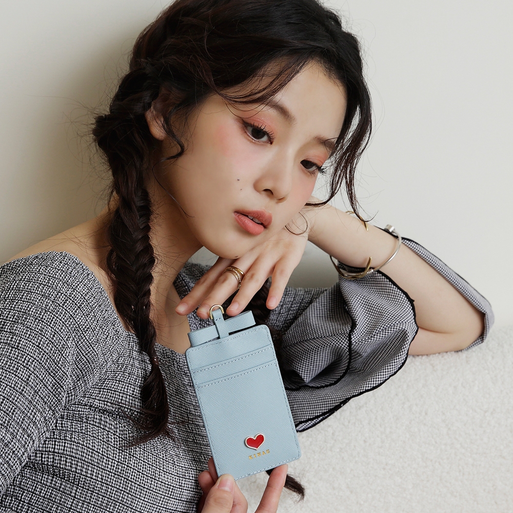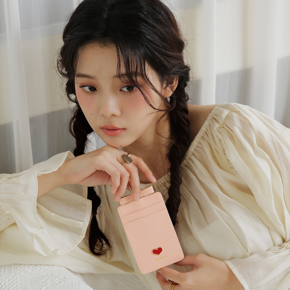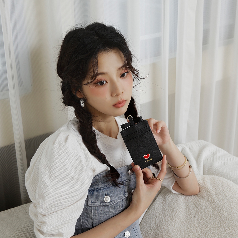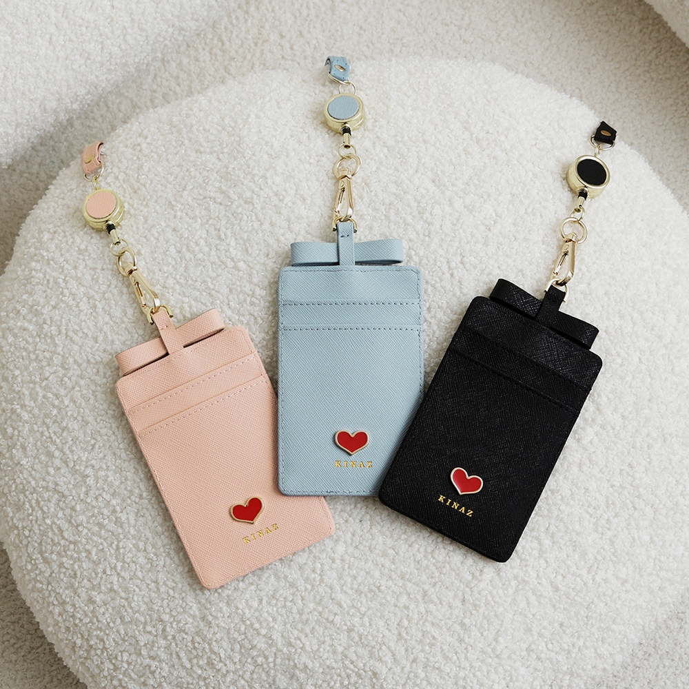 KINAZ 牛皮愛心鑲飾蝴蝶結伸縮頸繩票卡夾-喵星人系列茱萸粉|寧靜藍|星空黑Bag StrapsKINAZ官方直營