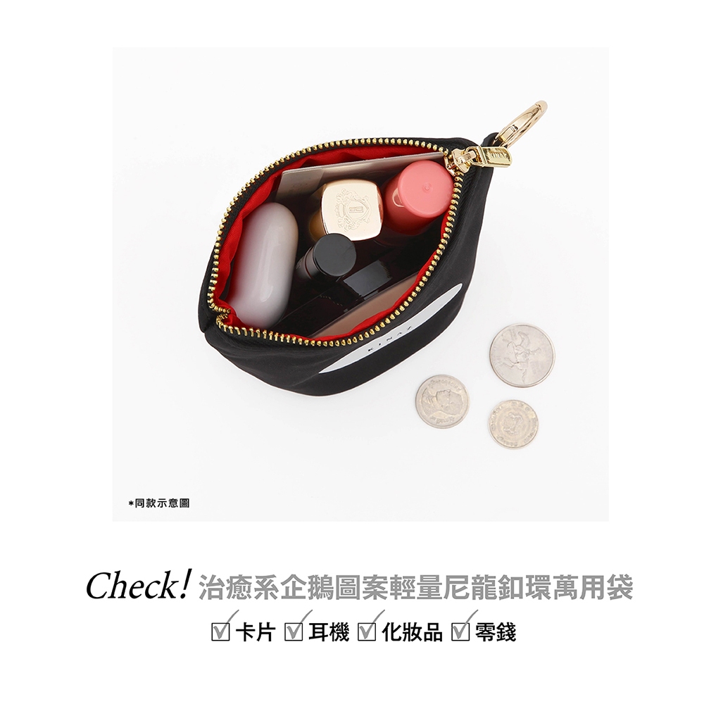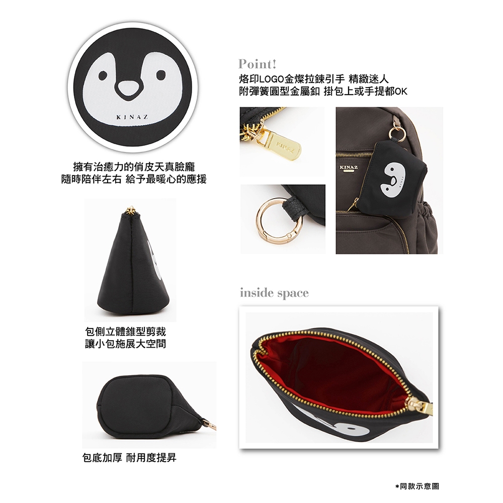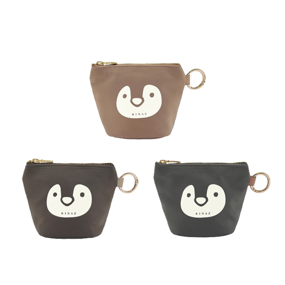 KINAZ 企鵝圖案輕量尼龍圓釦環拉鍊萬用袋-企鵝系列珊瑚砂|日蝕褐|暮日灰Coin Holders & PursesKINAZ官方直營