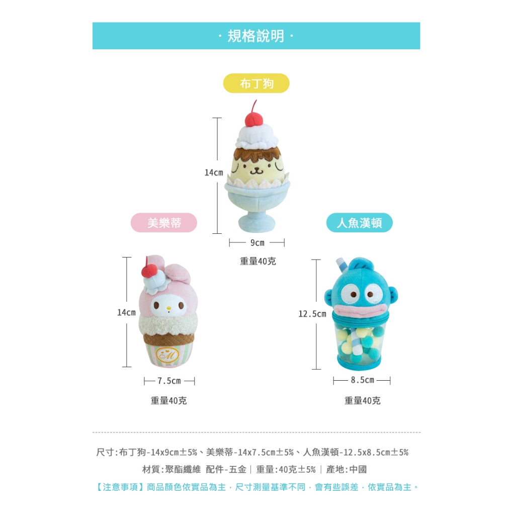 三麗鷗 冰品主題系列絨毛吊飾 多款選美樂蒂|布丁狗|人魚漢頓Charms & TwilliesKiiwi O! 官方旗艦店