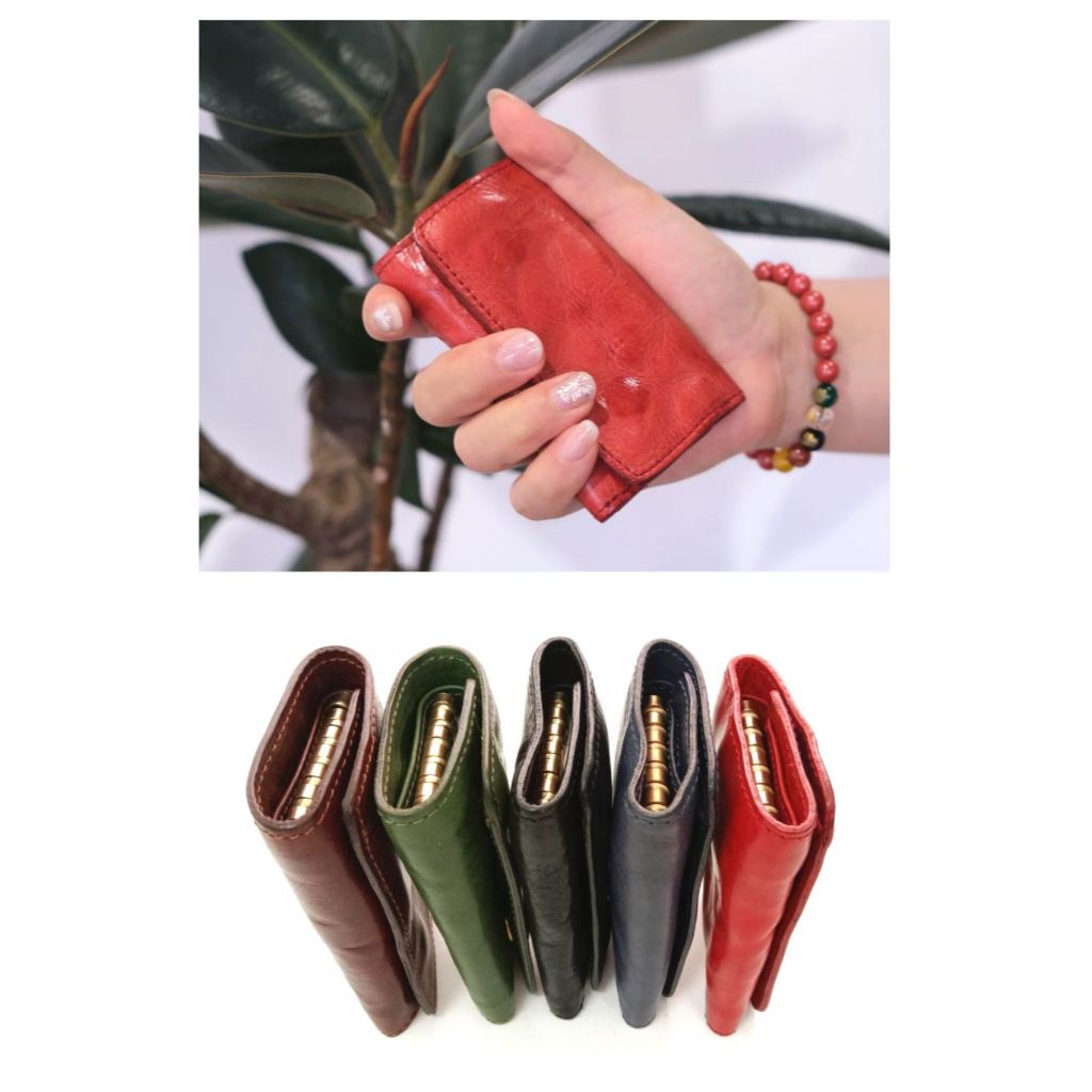 Jills 植鞣皮革抓皺感壓釦鑰匙包 共六色深棕|抹茶綠|大紅|日落黃|寶藍|黑色Phone & Key Walletsjill’s 質感美型包