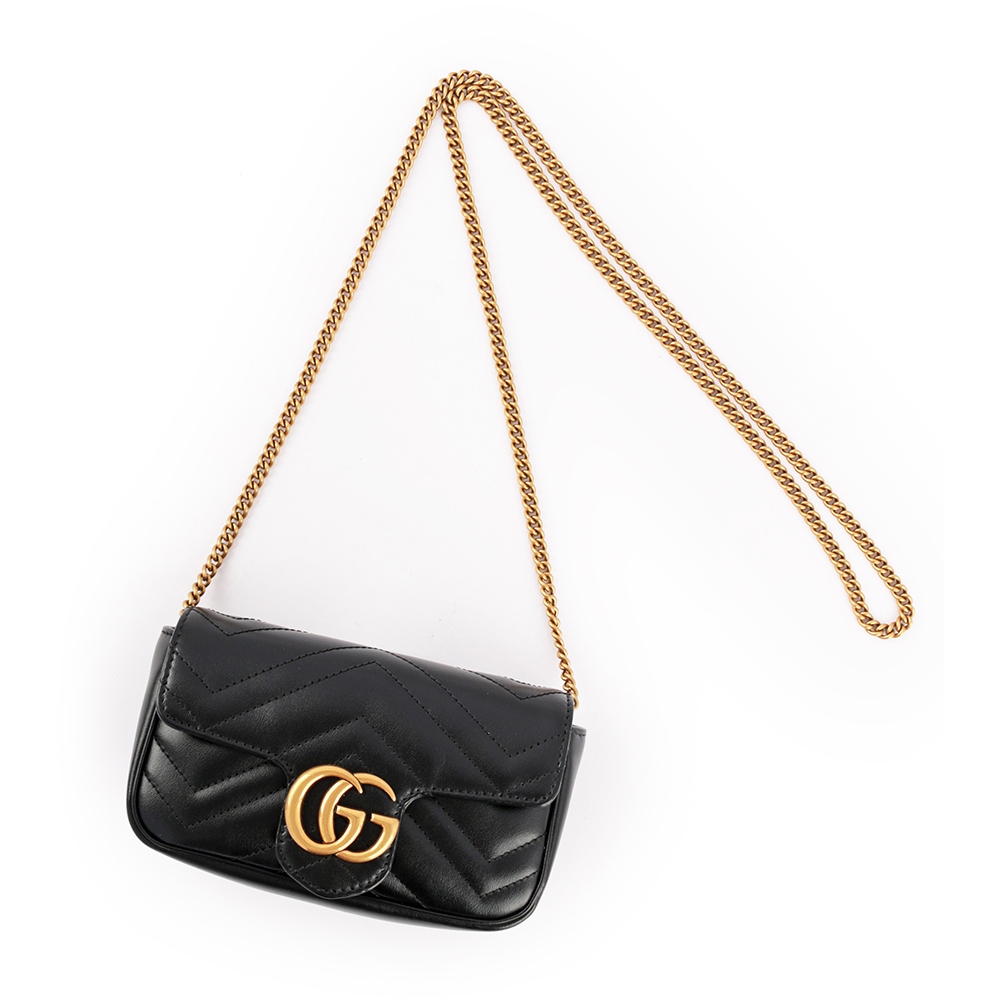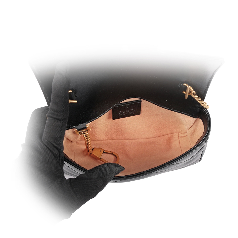 GUCCI GG Marmont牛皮翻蓋肩背/斜背鏈包(mini款)(黑色) 476433 DTDCT 1000GUCCI GG Marmont牛皮翻蓋肩背/斜背鏈包(mini款)(黑色) 476433 DTDCT 1000JR名牌精品