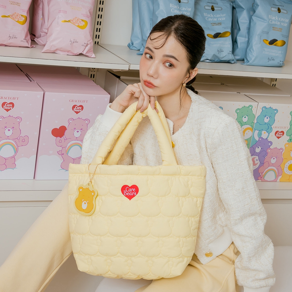 【Grace Gift】Care Bears -樂觀/幽默/分享/晚安小熊吊牌衍縫空氣托特包 M粉紅|淺黃|淺藍|淺紫Grace gift 正式官方旗艦店