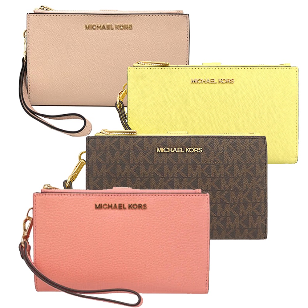 【Michael Kors】JET SET TRAVEL皮革雙層手掛式手拿手機套中夾1.腮紅粉十字紋防刮皮革|2.蜜桃粉皮革|3.芭蕾粉十字紋防刮皮革|4.檸檬黃十字紋防刮皮革|5.深咖啡PVCx檸檬黃|10.藍色十字紋防刮皮革|6.黑色十字紋防刮皮革|8.香草白PVCx粉|9.粉PVCx粉|7.咖啡十字紋防刮皮革|11.焦糖咖啡PVCBifold & Trifold WalletsHDL國際名品