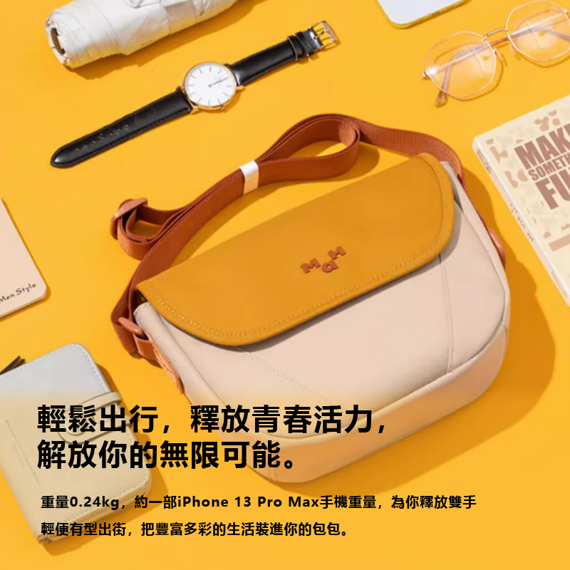 買一送二 隔日配⚡MAH 設計師定制斜背包 女包 2025新款 時尚 春夏季單肩包包 通勤設計感小眾馬鞍包男 防潑水經典黃白設計款(臺中現貨)MaH 台灣官方旗艦館
