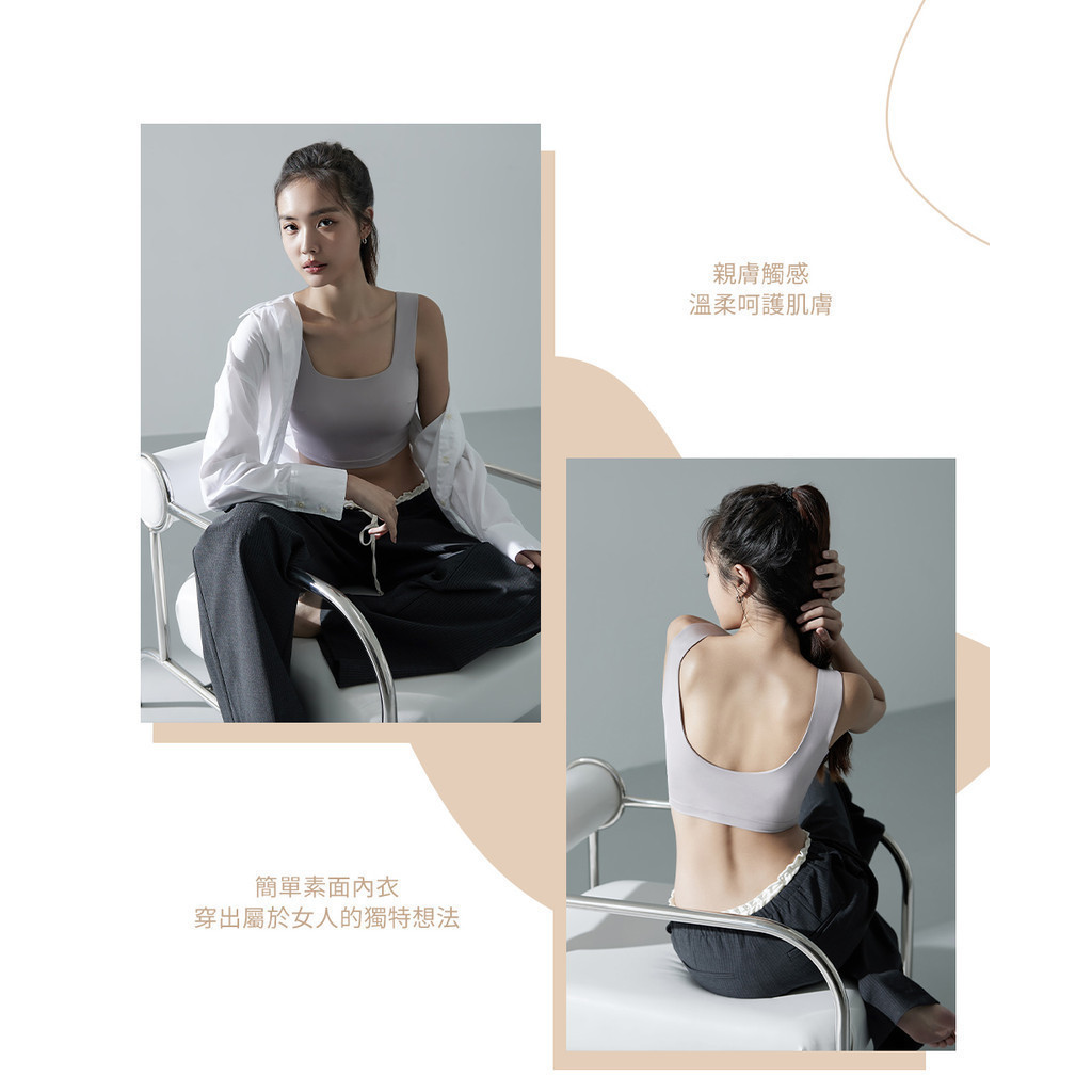 蕾黛絲-格雷系極簡方領無鋼圈M-EL背心 格雷淺灰|D21-415 Q9M|L|ELBrasLadies 蕾黛絲官方旗艦店