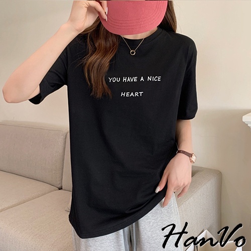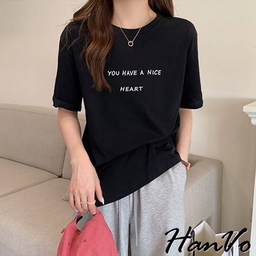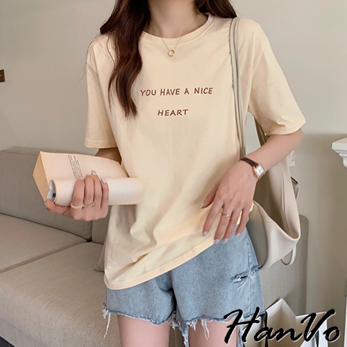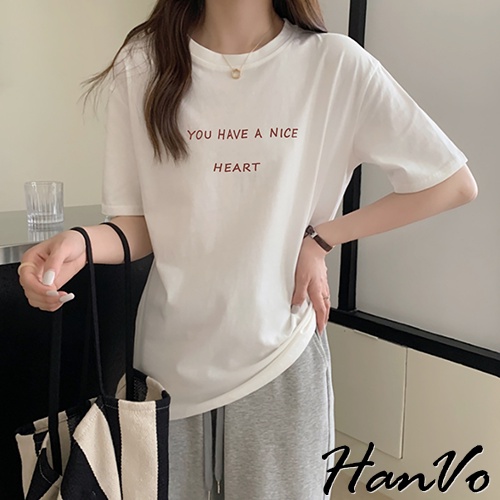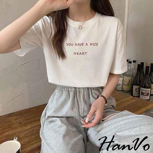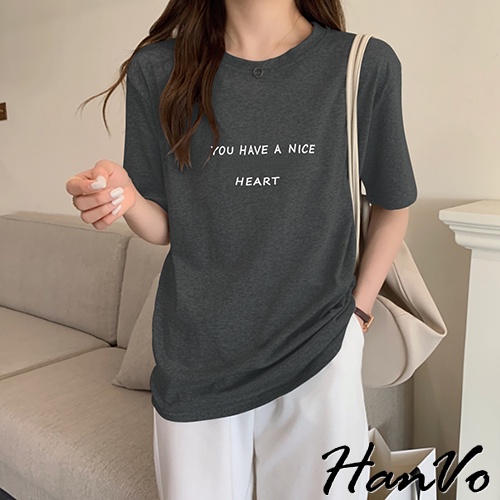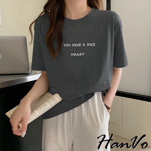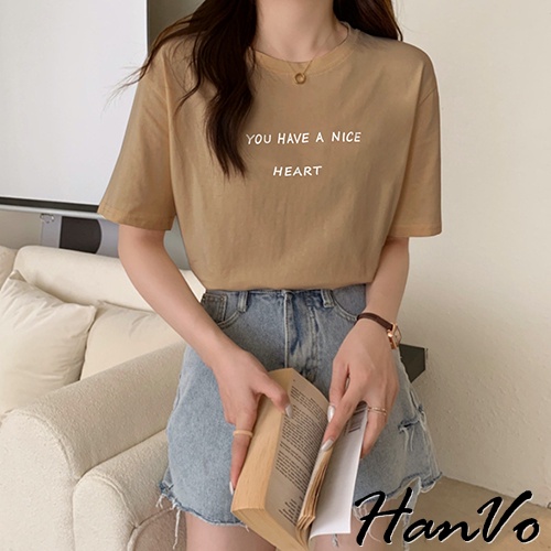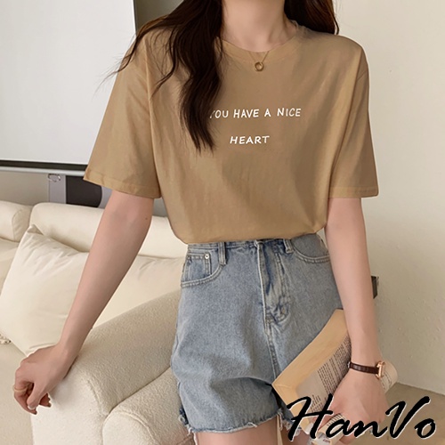 【HanVo】溫柔奶油系簡約字母T 韓版休閒百搭顯瘦圓領短袖上衣 韓國簡約時尚T恤 韓系女裝 女生衣著 A01-1338拿鐵|黑色|白色|炭灰|奶杏T-shirtsHanVo Wear Collection