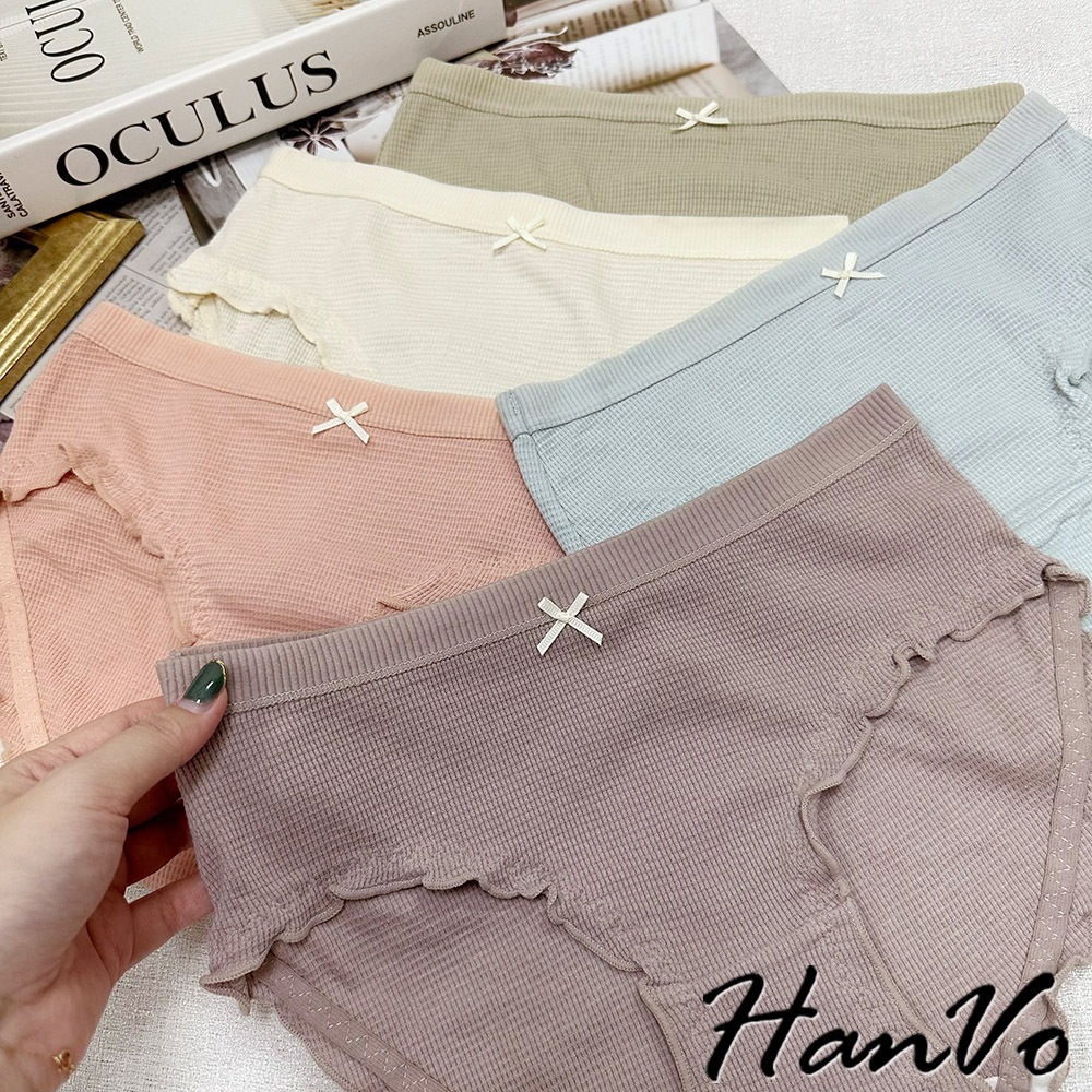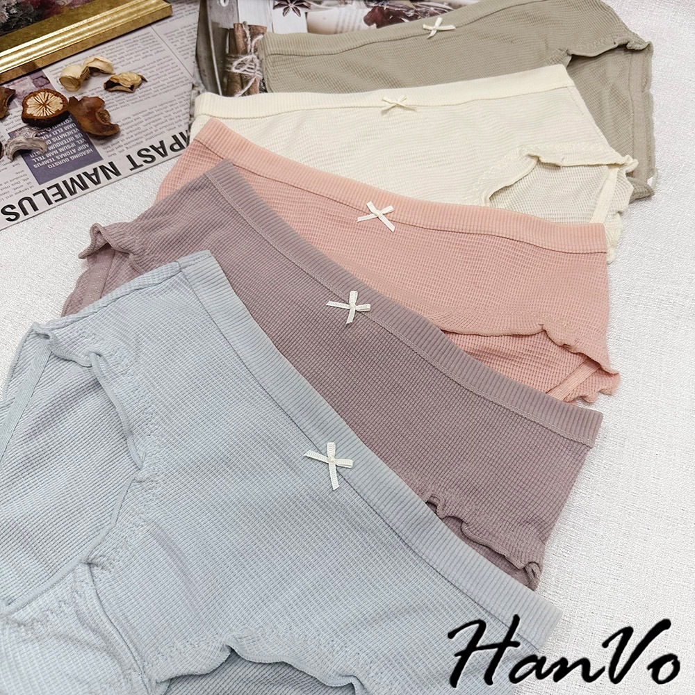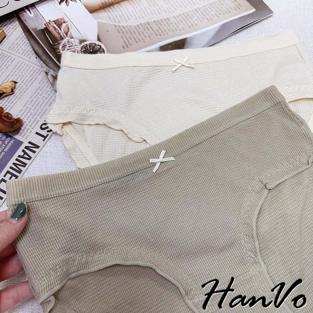 【HanVo】華夫格木耳邊邊素色內褲 獨立包裝 中腰 薄款包覆柔軟舒適三角褲 女生內褲 內著 A11-5259裸膚杏|茶園綠|珊瑚橘|天空藍|芋香紫|NG福利品(不挑色不退貨)PantiesHanVo Wear Collection