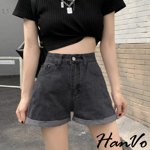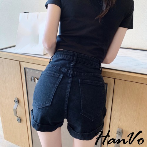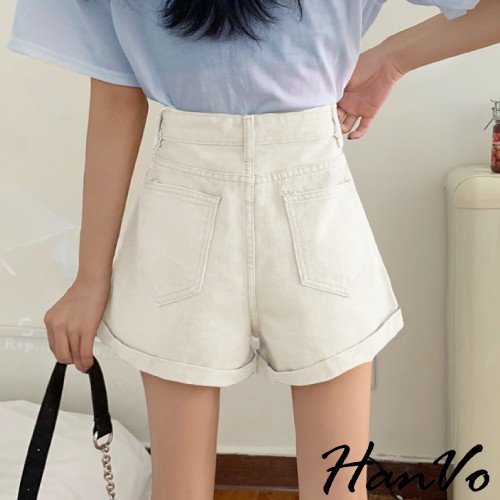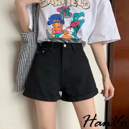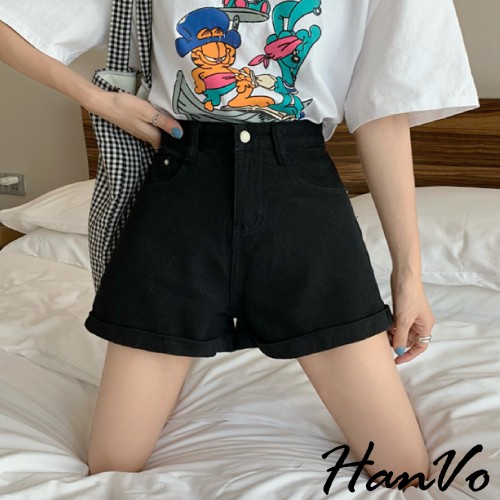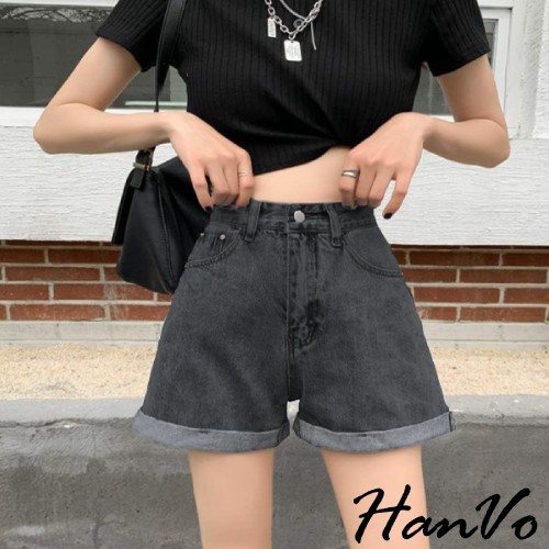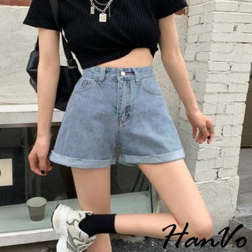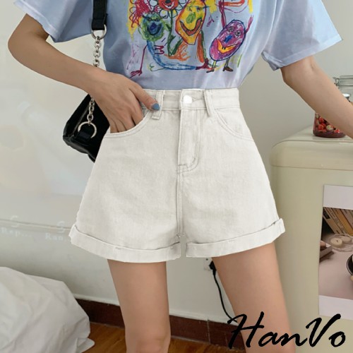 【HanVo】基本款反摺寬鬆高腰牛仔短褲 顯瘦復古高腰短褲寬褲A字褲老爹褲 車線反摺 牛仔褲 女生衣著 A03-2035藍色,S|藍色,M|藍色,L|藍色,XL|黑色,S|黑色,M|黑色,L|黑色,XL|白色,S|白色,M|白色,L|白色,XL|水洗灰,S|水洗灰,M|水洗灰,L|水洗灰,XLShortsHanVo Wear Collection