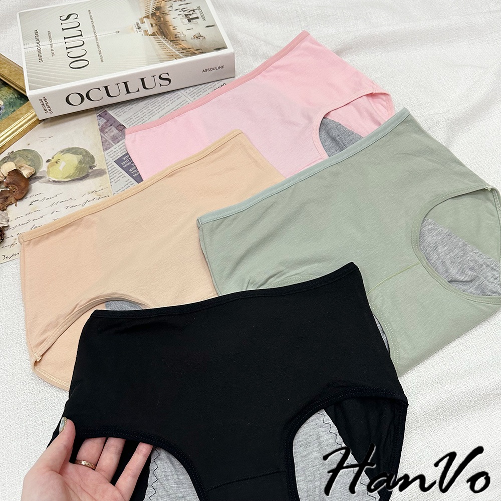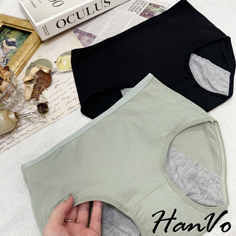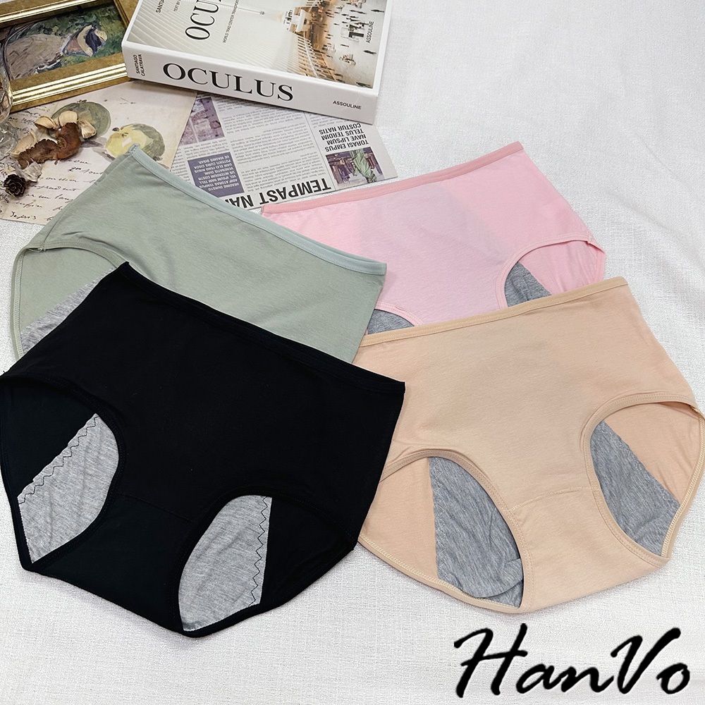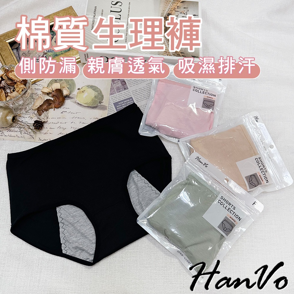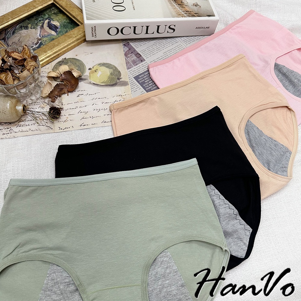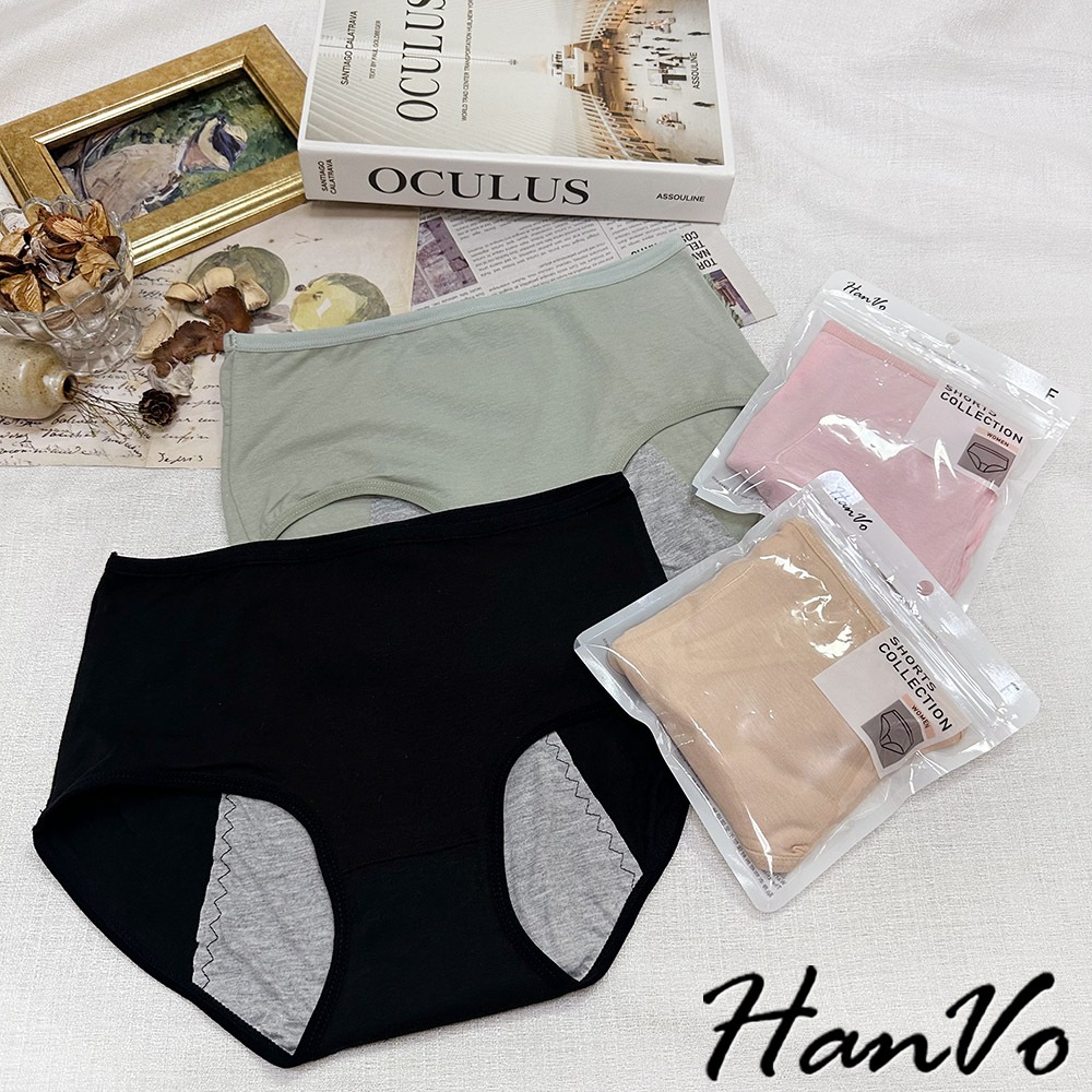 【HanVo】經典素面純色純棉生理褲 透氣吸濕排汗親膚包覆 中高腰 獨立包裝 流行少女內褲 內著 A11-5241NG福利品(不挑色不退貨)|花果綠|公主粉|午夜黑|自然膚|花果綠(有口袋)|自然膚(有口袋)PantiesHanVo Wear Collection