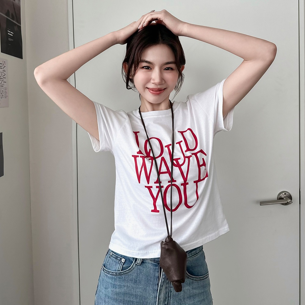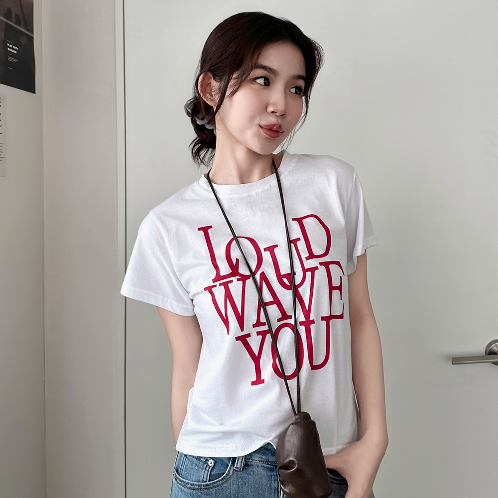 LULUS韓製/英字膠印修身上衣2色【A01250452】正韓250626花灰|白T-shirtsLULUS