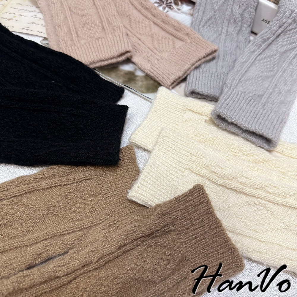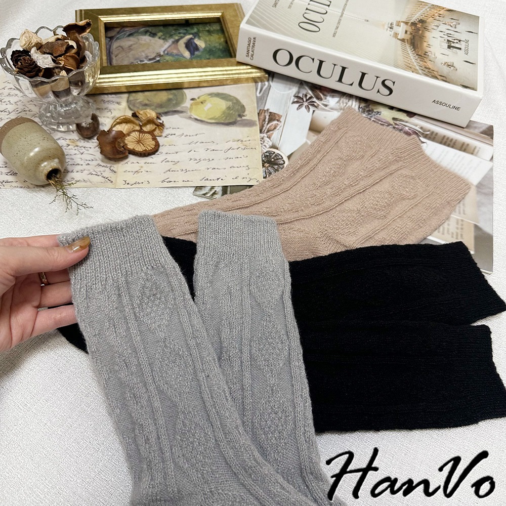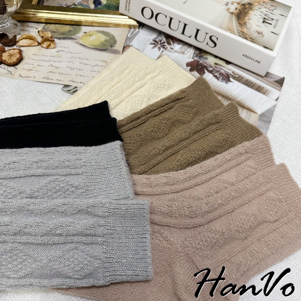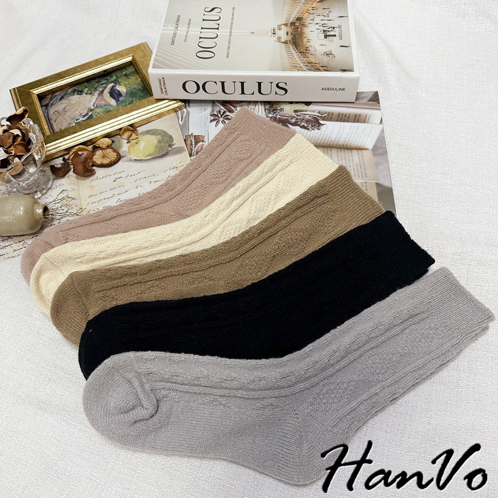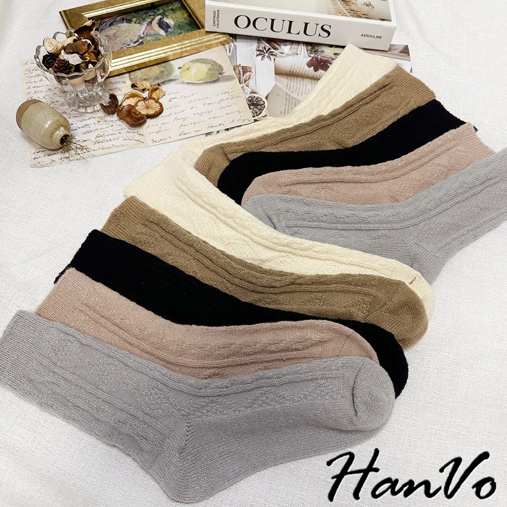 【HanVo】麻花格菱毛絨加厚中筒襪 保暖羊絨甜美百搭 親膚觸感 女生休閒襪 女生配件 A12-6344午夜黑|柔膚杏|迷霧粉|冰川灰|松果咖SocksHanVo Wear Collection