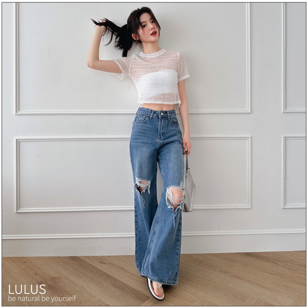 LULUS/泡泡格圓領透膚上衣3色【A01250272】250604