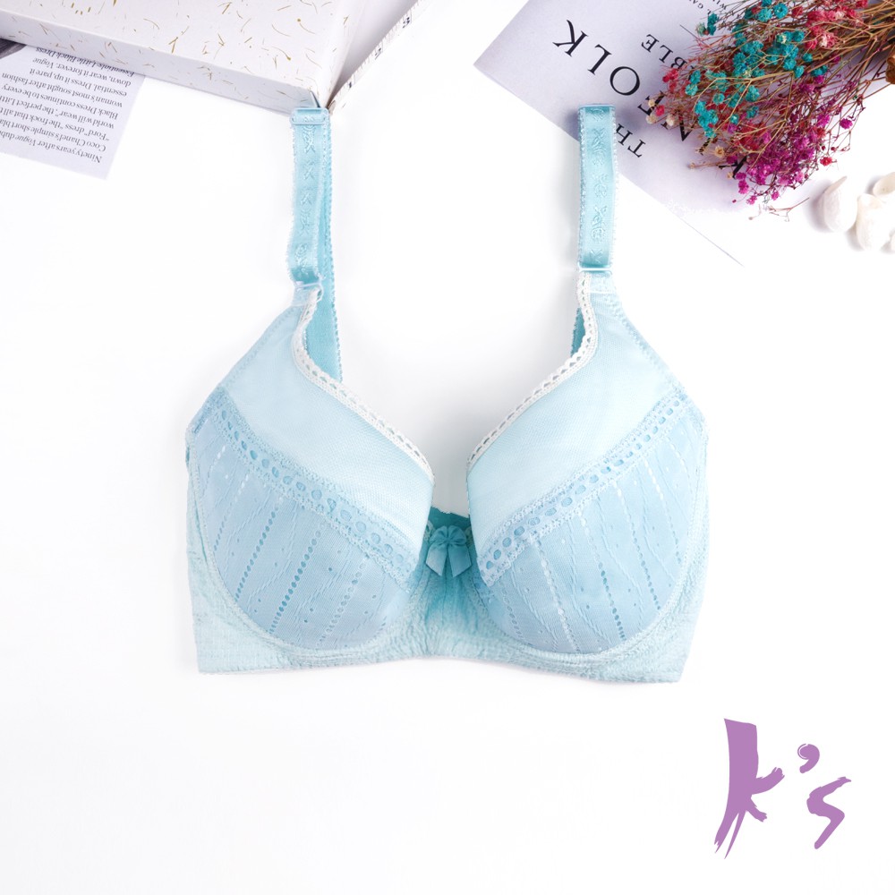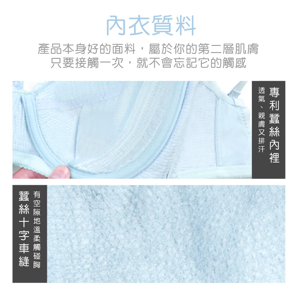 【K’s凱恩絲】簡約小資女美胸有氧蠶絲內衣-B46031款藍色34D|38D|40D|34E|36E|38EBrasKS凱恩絲蠶絲塑身內衣