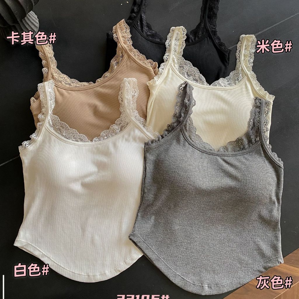 花邊蕾絲 吊帶背心 蕾絲邊 V領吊帶背心 内搭小可愛 細肩帶 罩杯小可愛 蕾絲內搭 背心 台灣賣家 台灣出貨黑色|米色|灰色|卡其色|白色Tanks & CamisolesKR.SKANGEL 內衣、內褲、小可愛、無鋼圈內衣、涼感內衣、冰絲內褲、生理褲