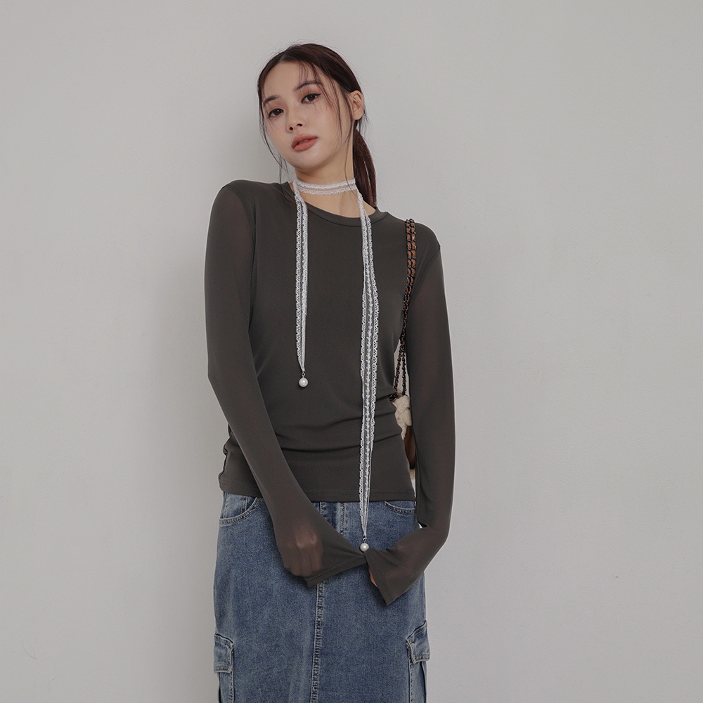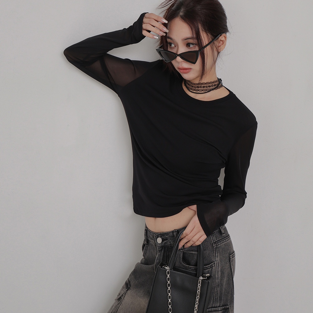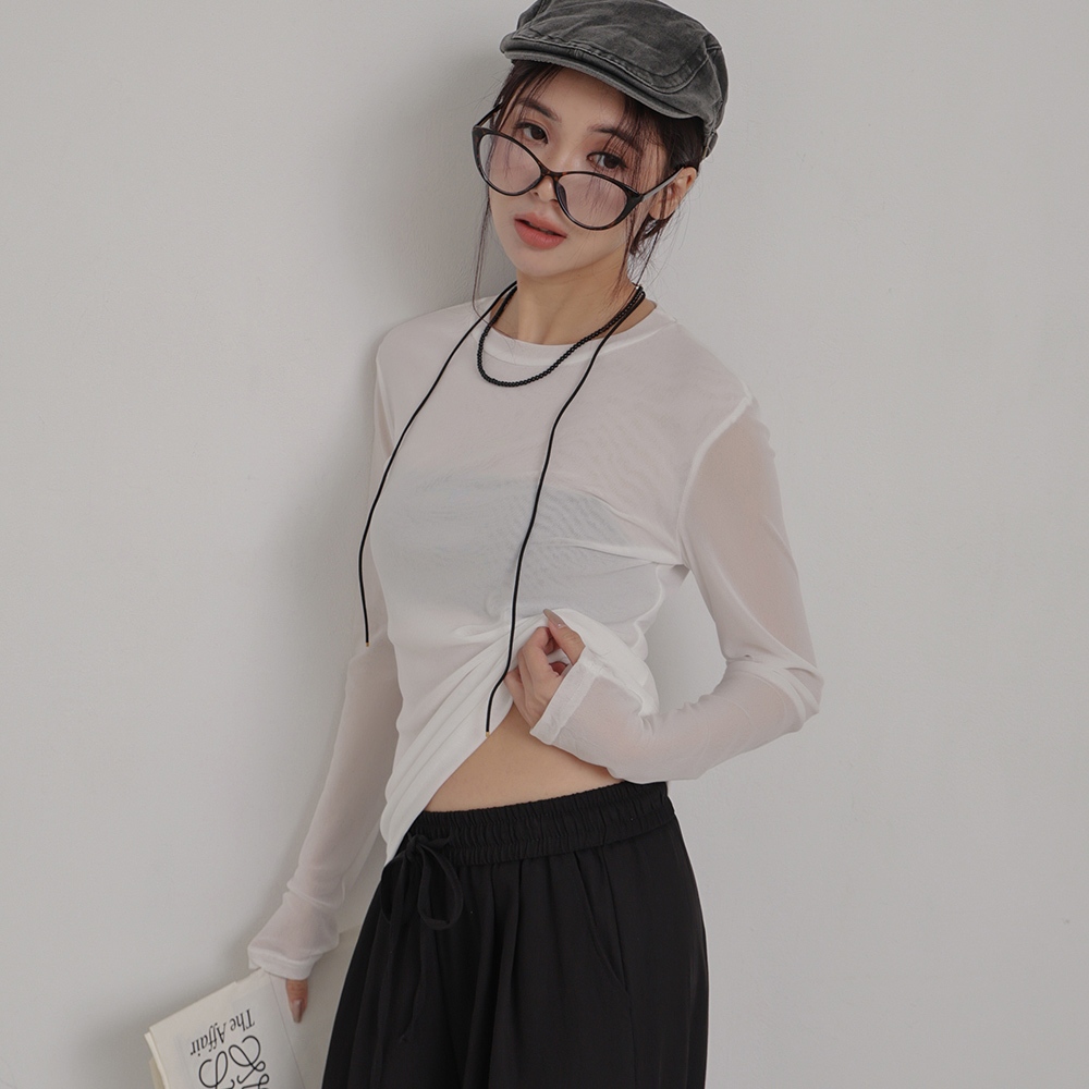 IN SHOP 彈力網紗圓領上衣-共3色【KT224227】白|灰|黑OthersIN’ SHOP 旗艦店