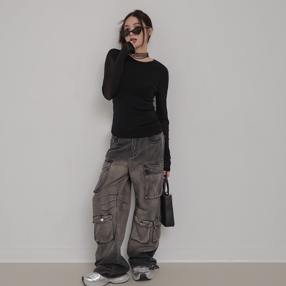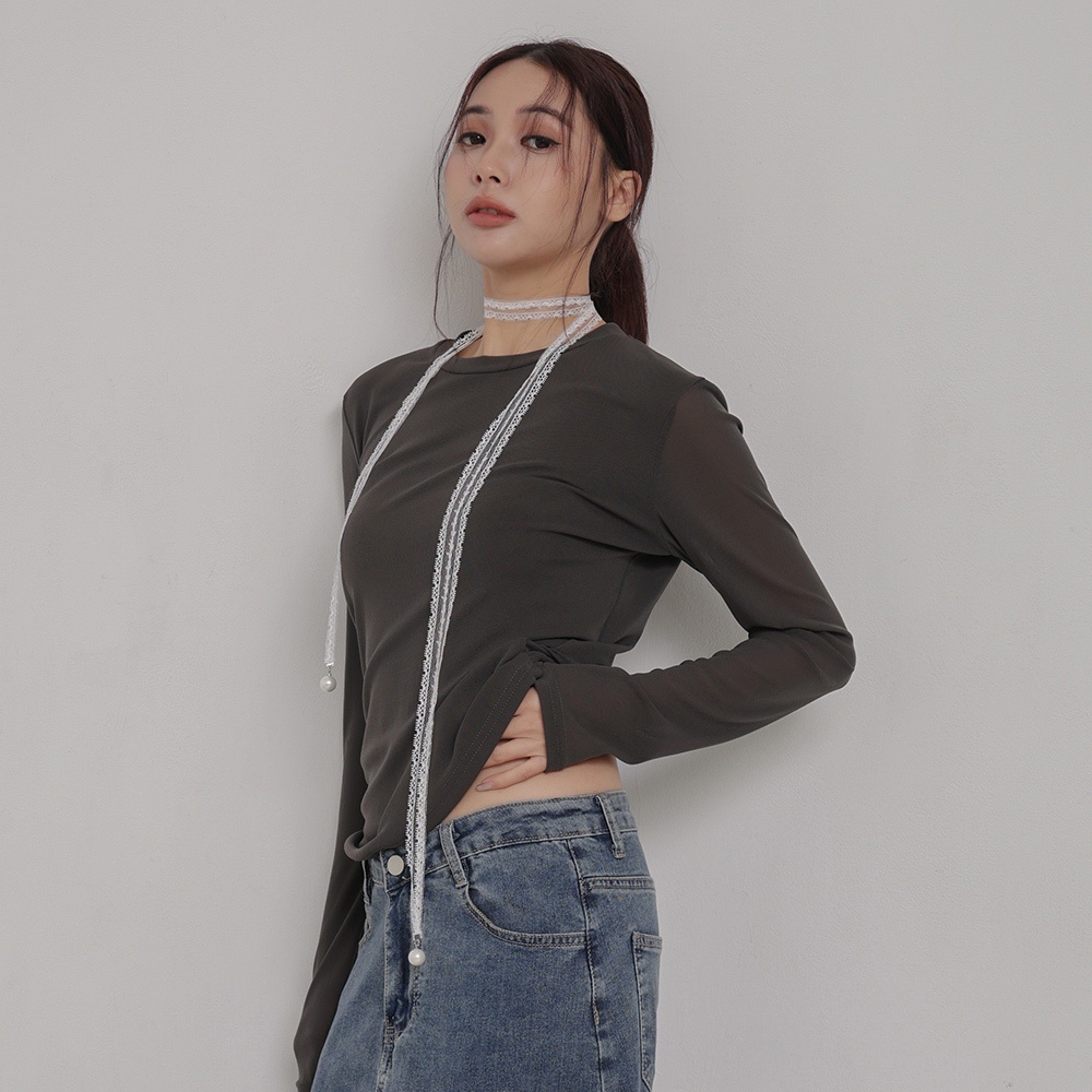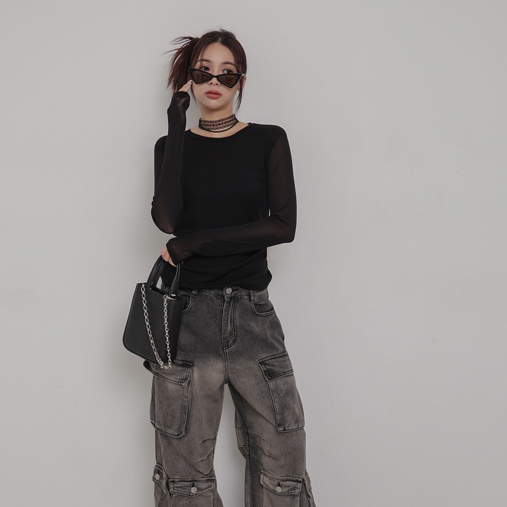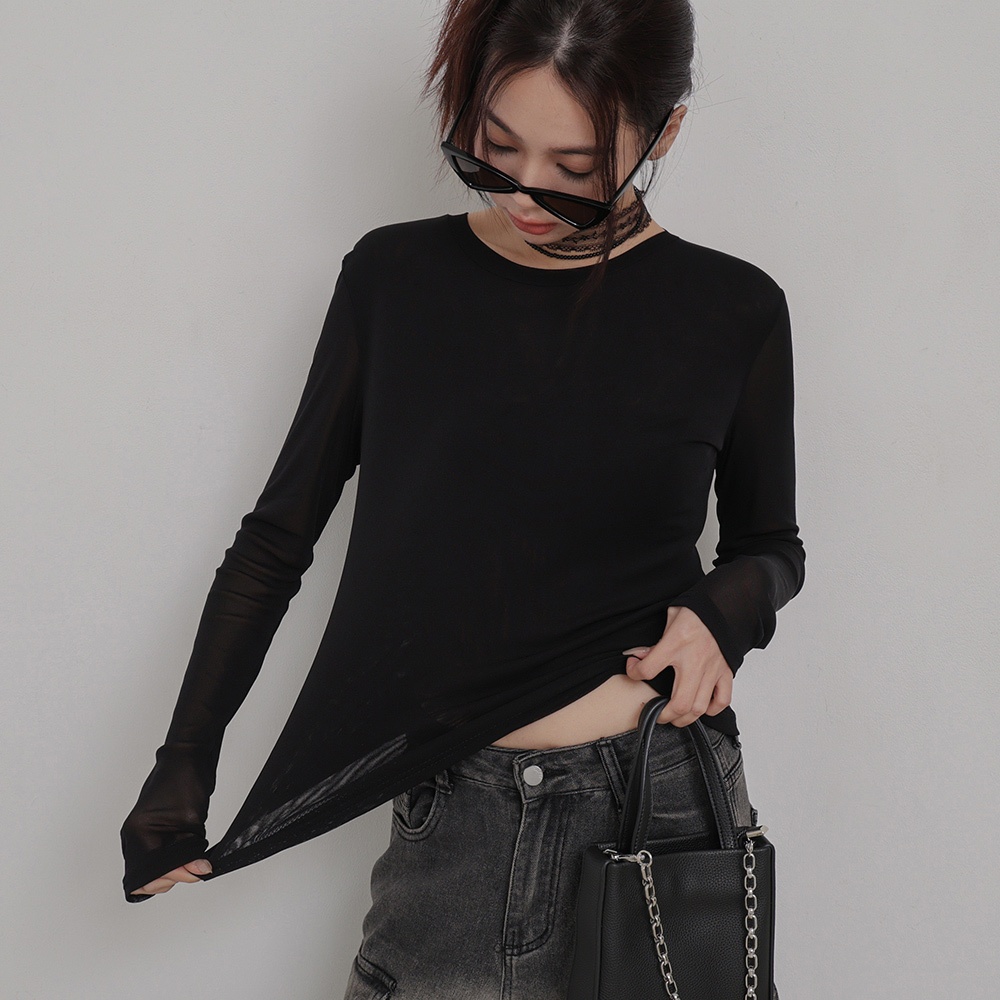 IN SHOP 彈力網紗圓領上衣-共3色【KT224227】白|灰|黑OthersIN’ SHOP 旗艦店