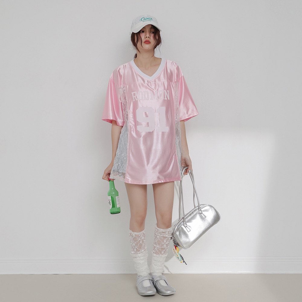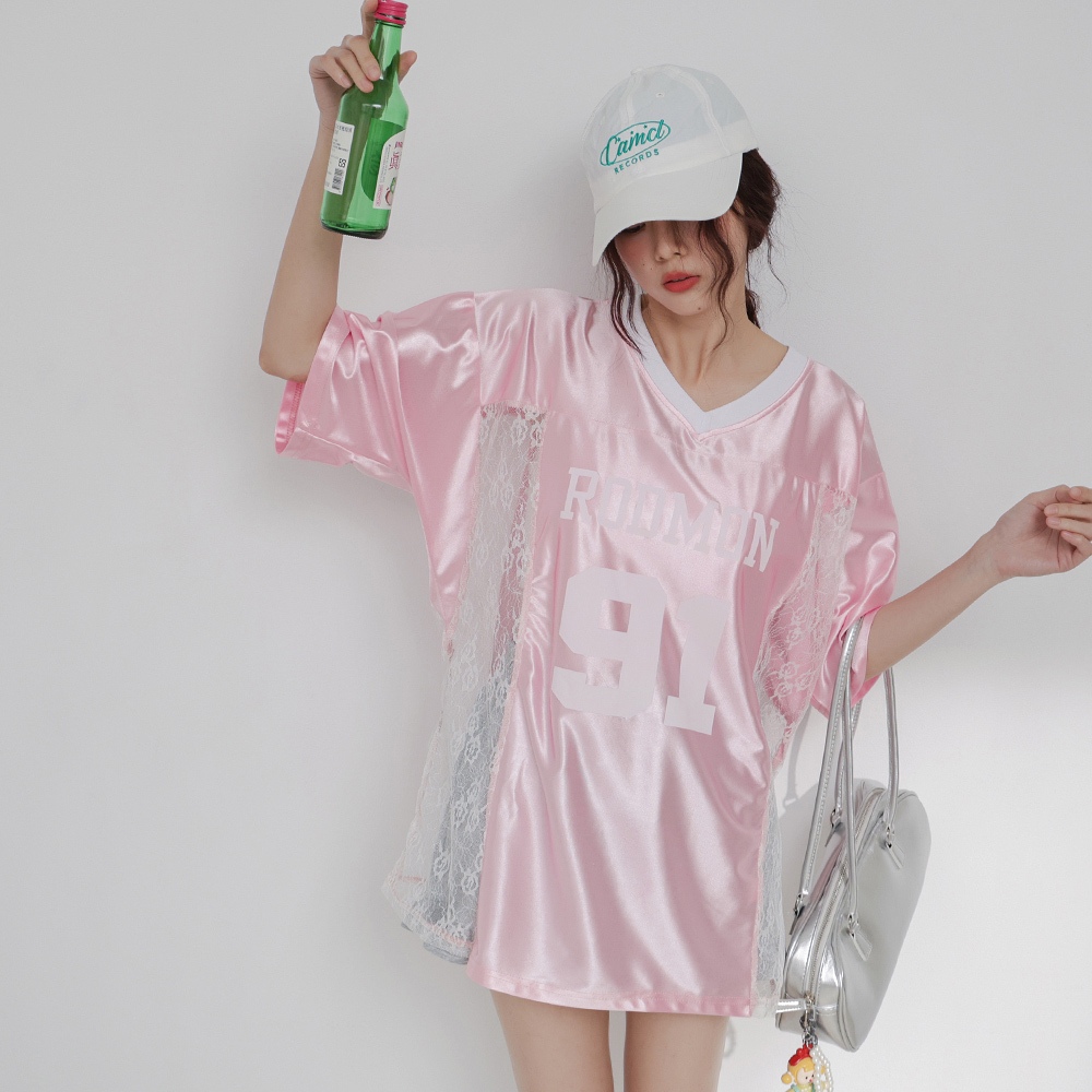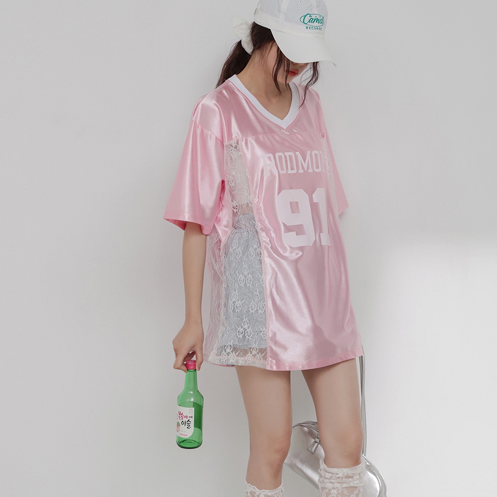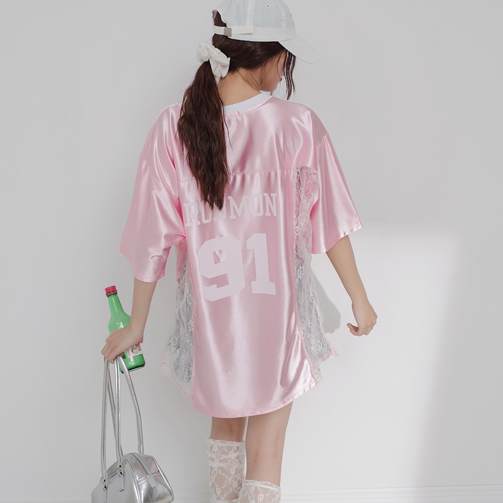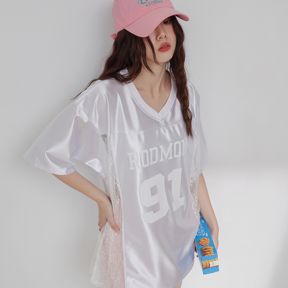 IN SHOP 緞面拚蕾絲大球衣-共3色【KT224449】白|粉|黑T-shirtsIN’ SHOP 旗艦店
