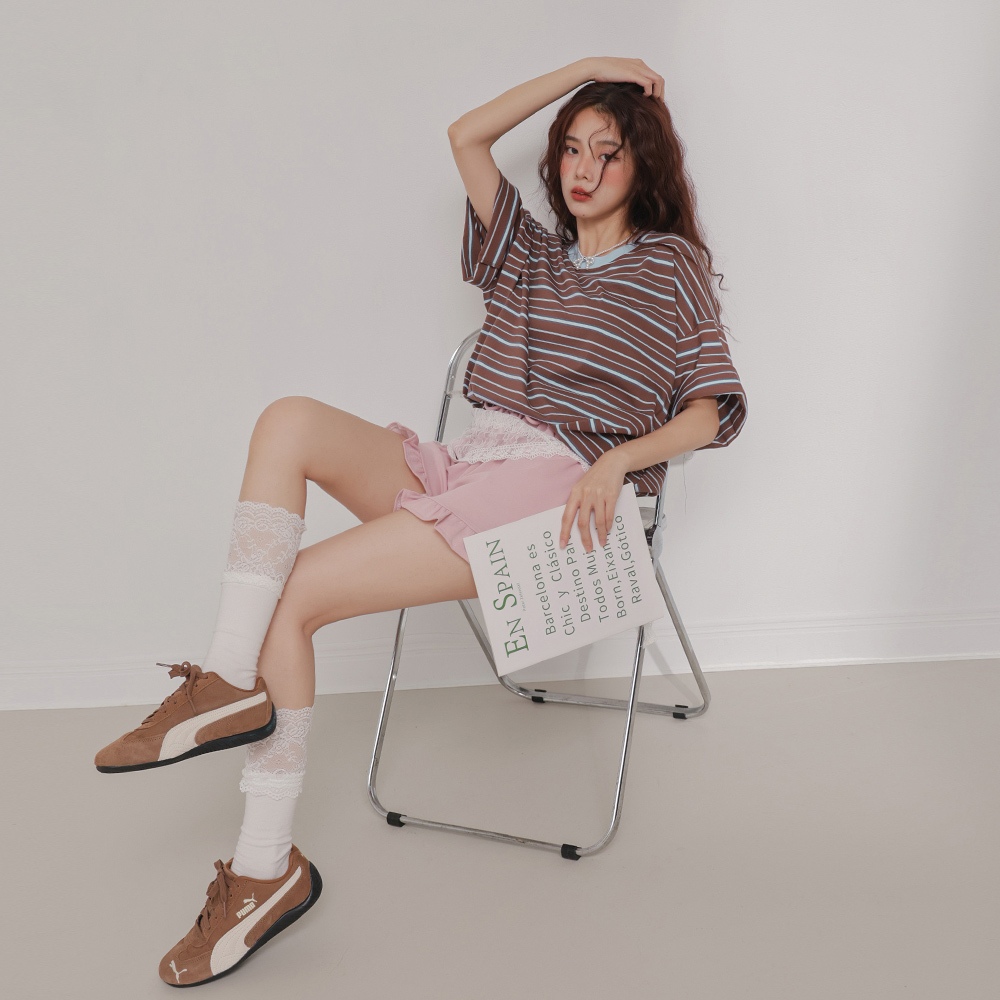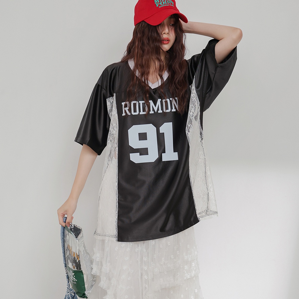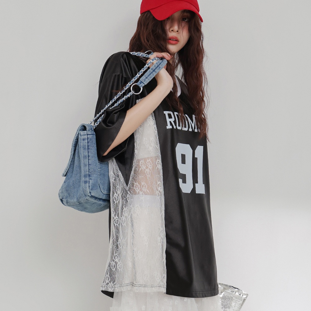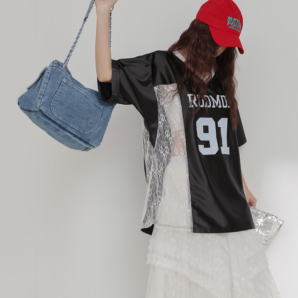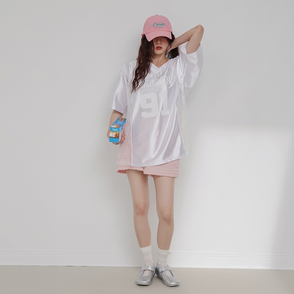 IN SHOP 緞面拚蕾絲大球衣-共3色【KT224449】白|粉|黑T-shirtsIN’ SHOP 旗艦店