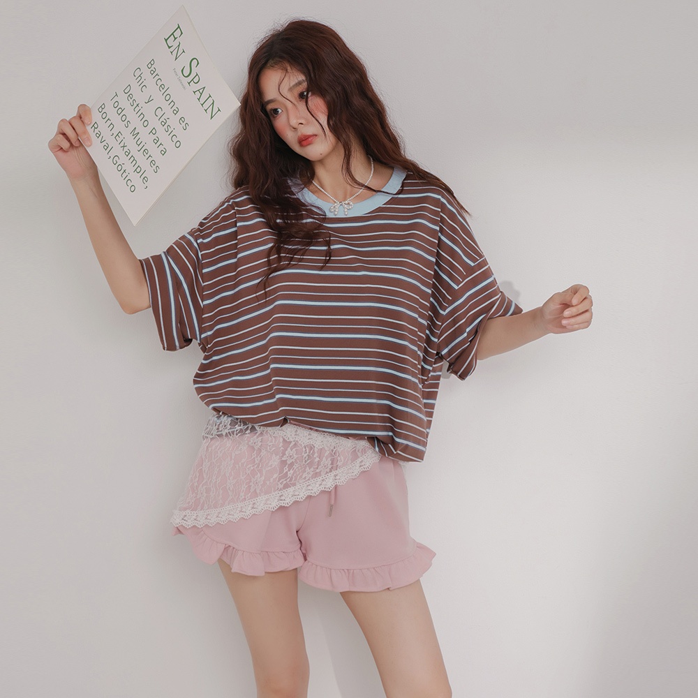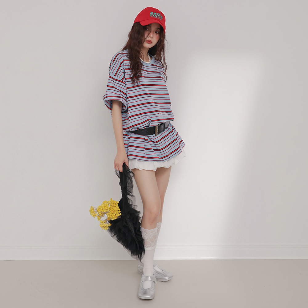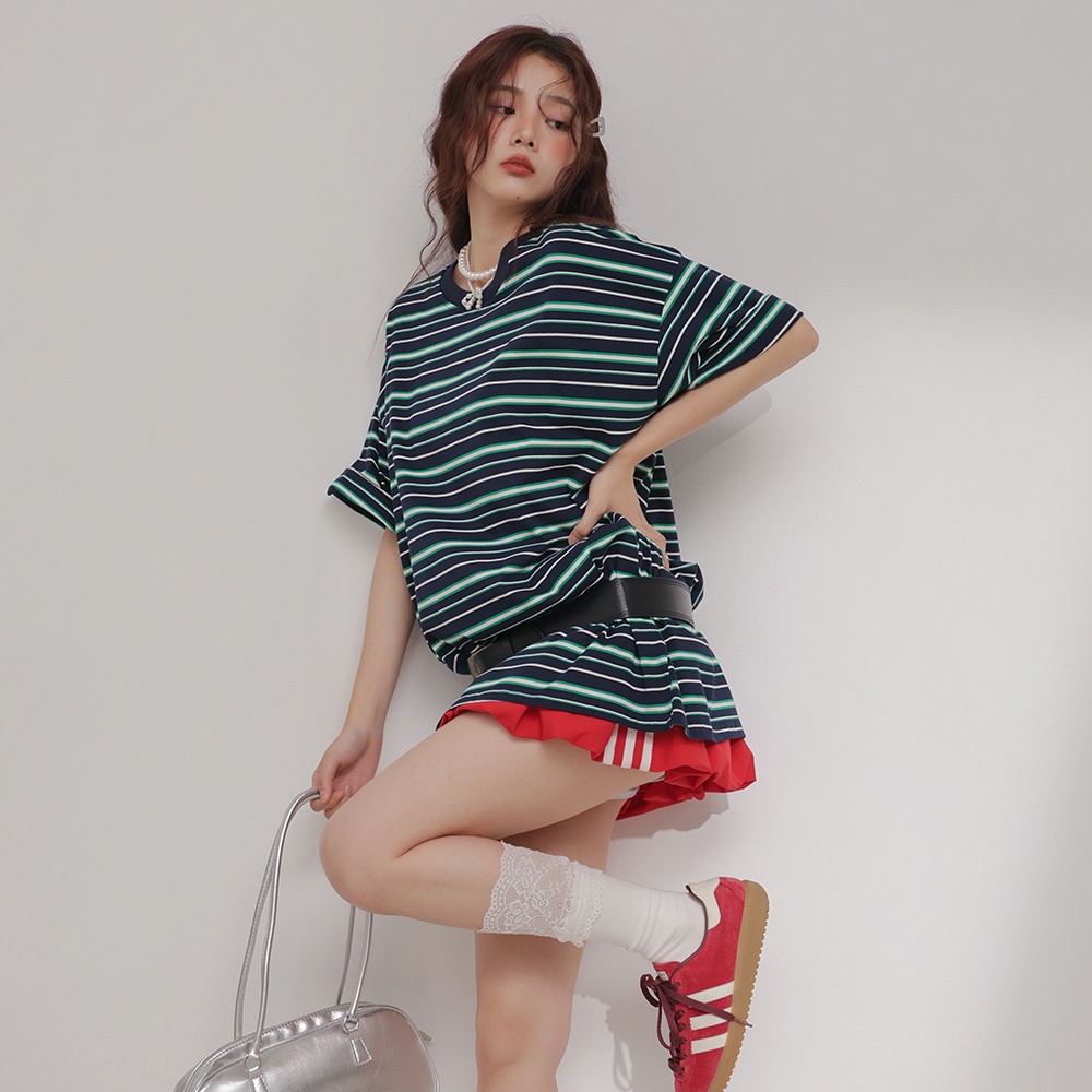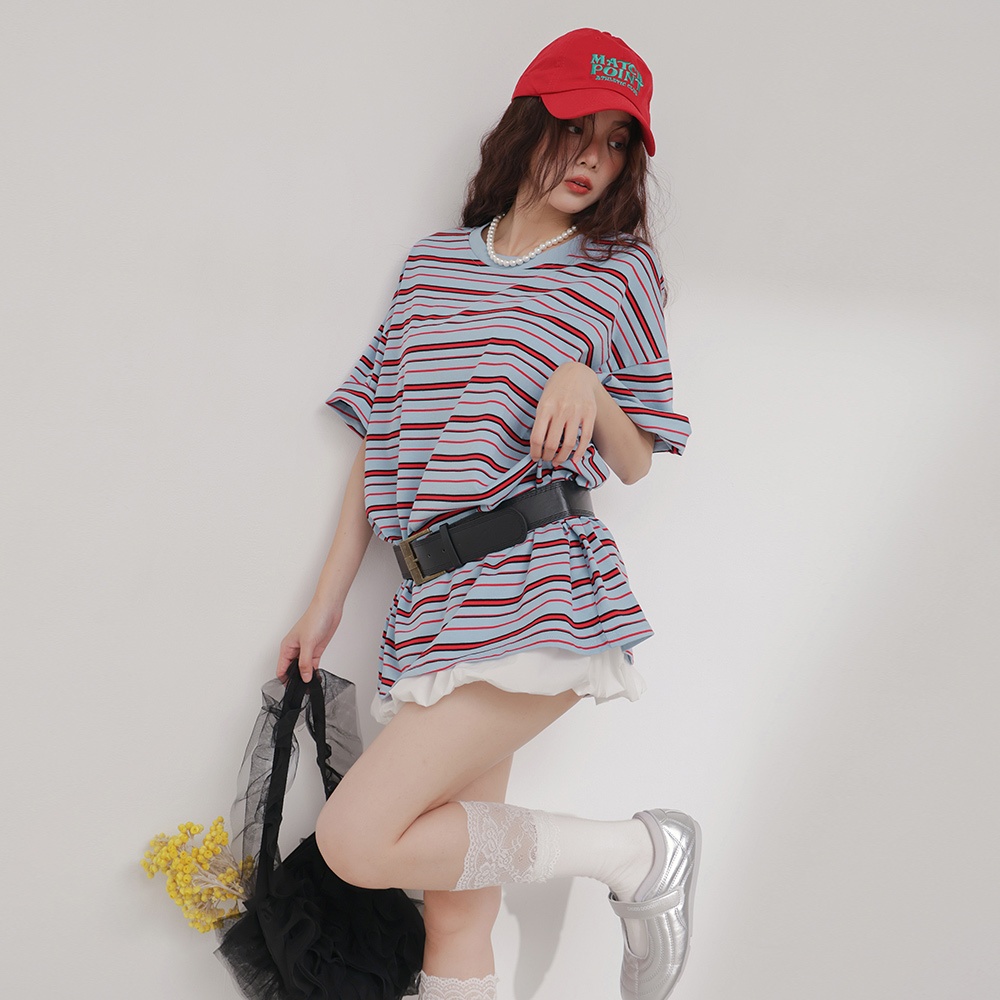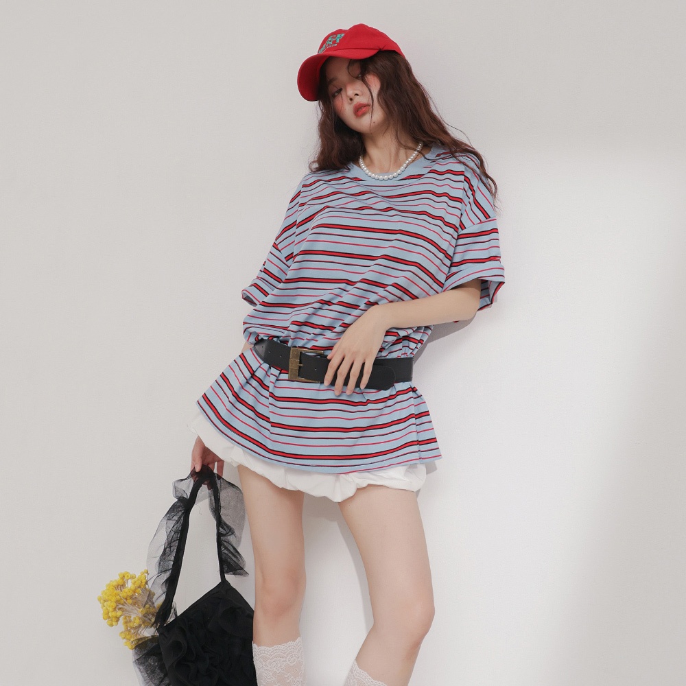 IN SHOP 撞色橫條大T-共4色【KT224529】紅藍|寶藍|咖|白T-shirtsIN’ SHOP 旗艦店