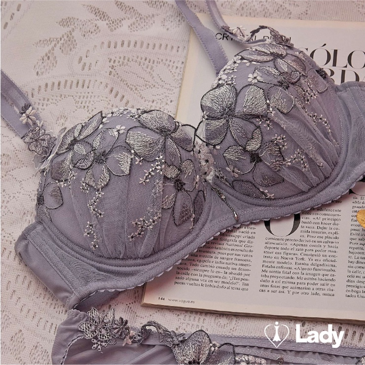 Lady 逐夢花影系列 B-F罩 法式 刺繡 蕾絲 內衣 (銀灰紫) │ 涼感 3/4罩杯70C|75D|75E|70D|75B|75F|80E|70B|70F|75C|70E|80C|80D|80F|85E|85FBrasLady內衣官方直營旗艦店