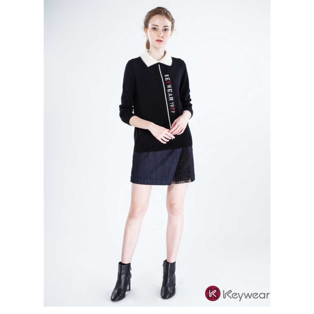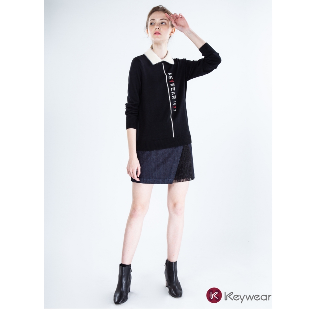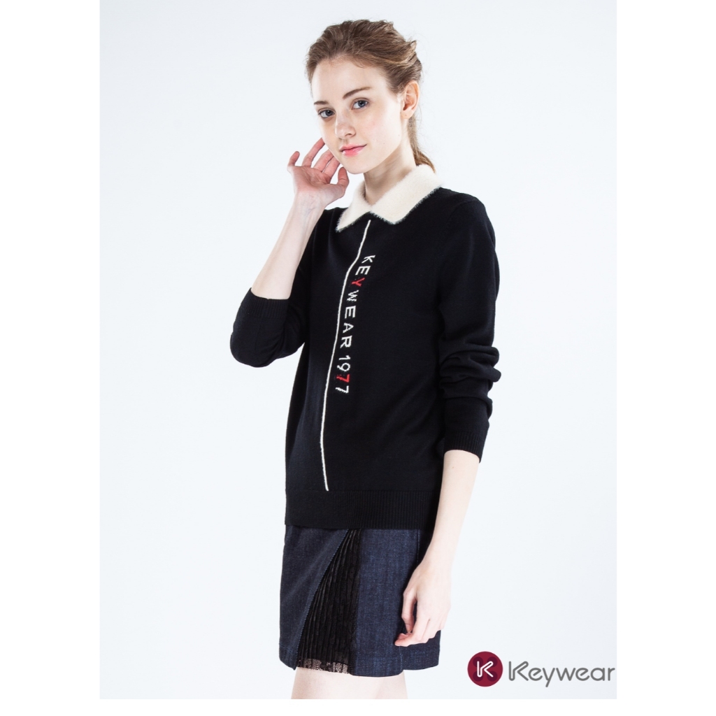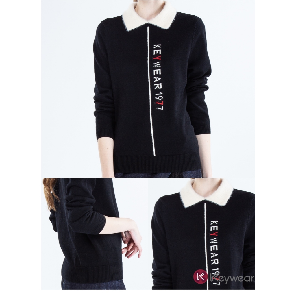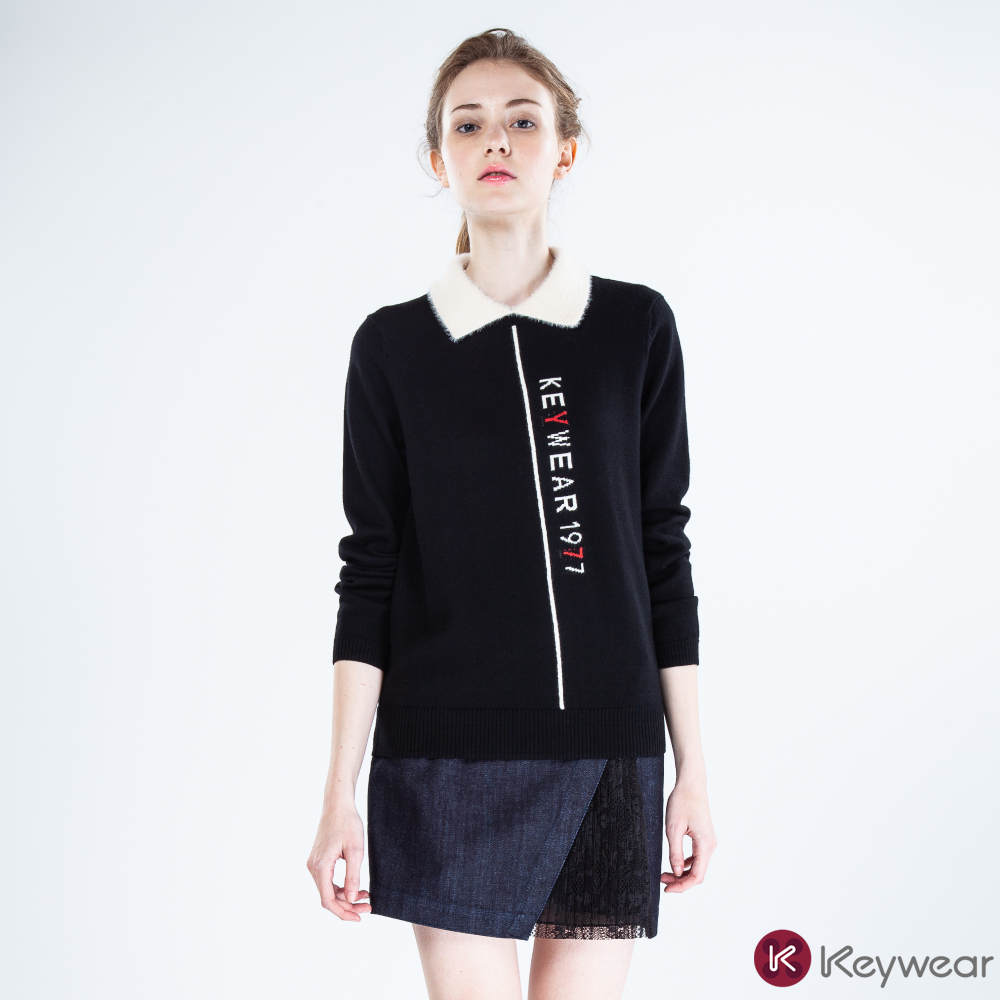 【KeyWear 奇威名品】撞色領字母針織毛衣 黑S|M|LKeywear奇威官方旗艦店
