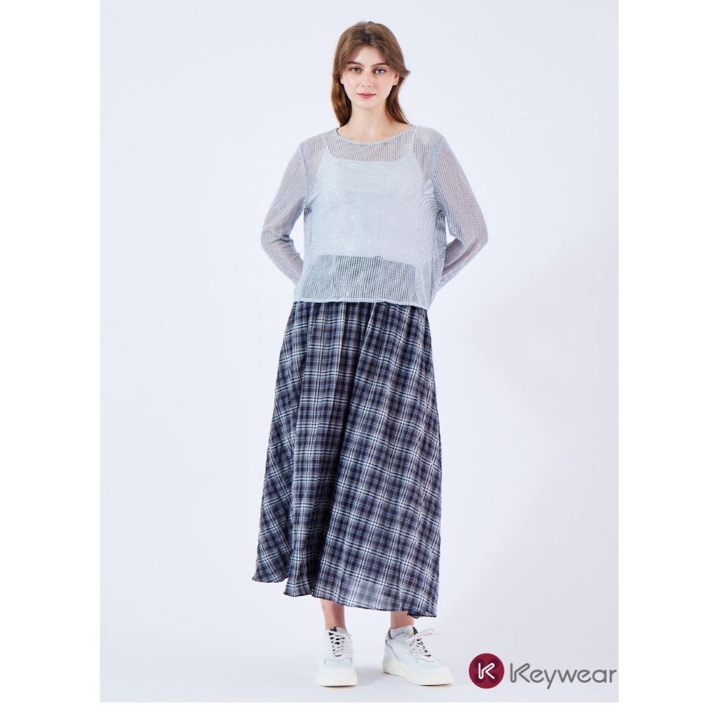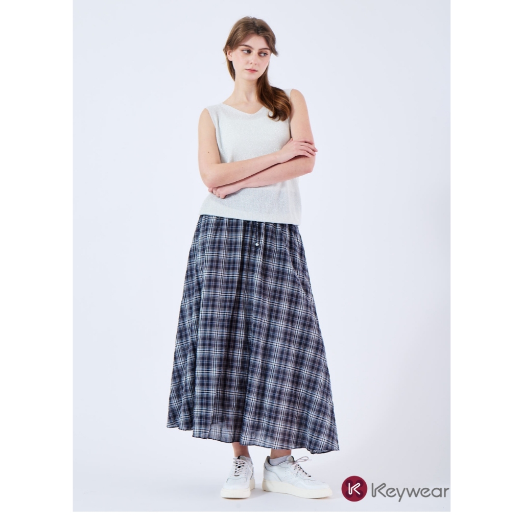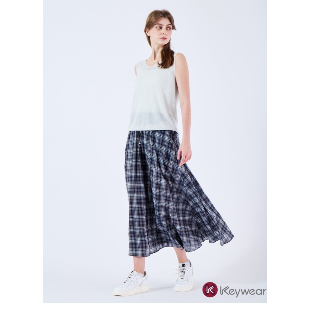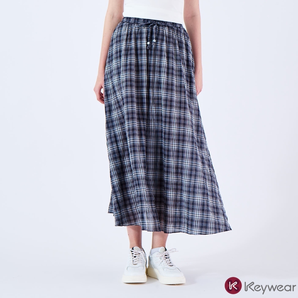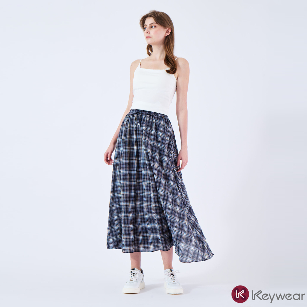 【KeyWear 奇威名品】經典格紋長裙 灰色灰,S|灰,M|灰,LKeywear奇威官方旗艦店