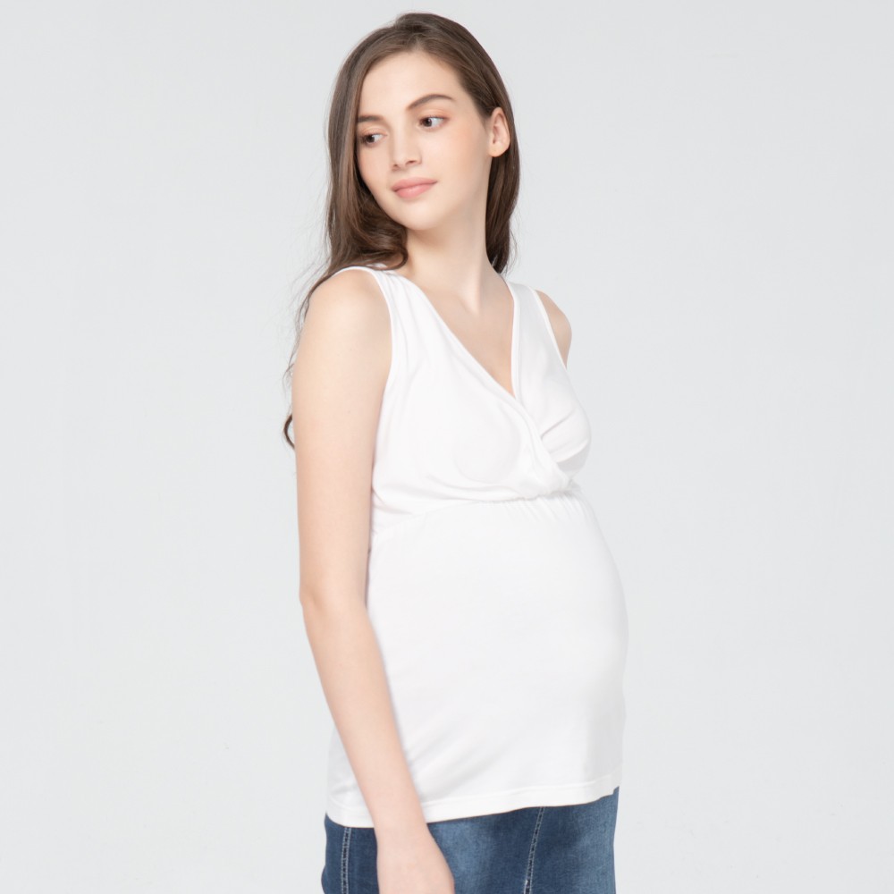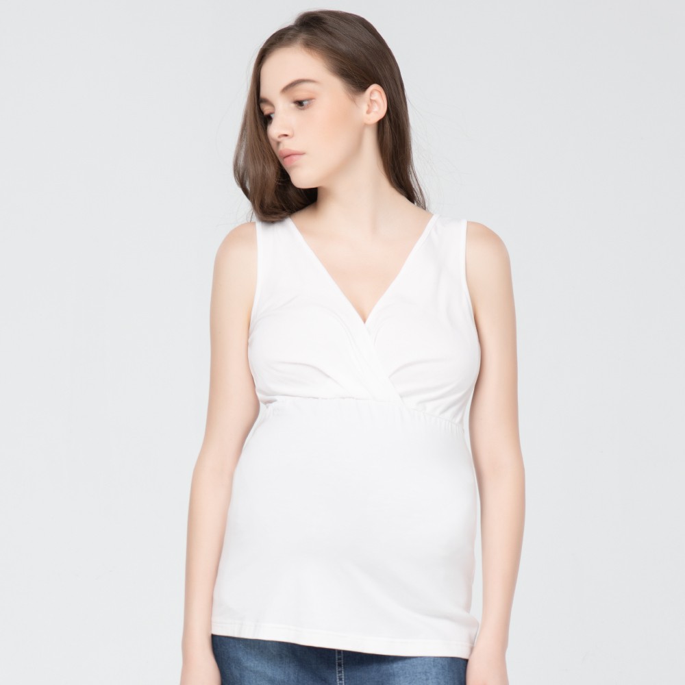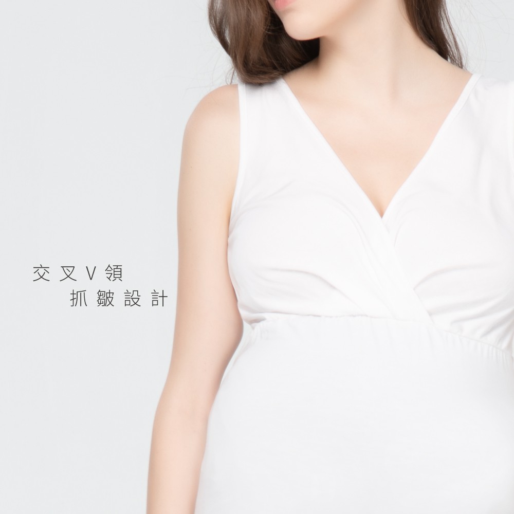 【Gennies 奇妮】V領無袖哺乳上衣-白(T3J07)S|M|L|XLBreastfeeding WearGennies 奇妮孕哺(官方旗艦店)