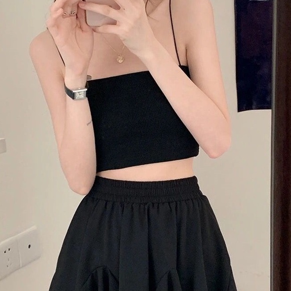 • 短版上衣 冰絲細肩小可愛 短版/常規版上衣 小可愛 性感背心 露肩學生休閒修身上衣020190