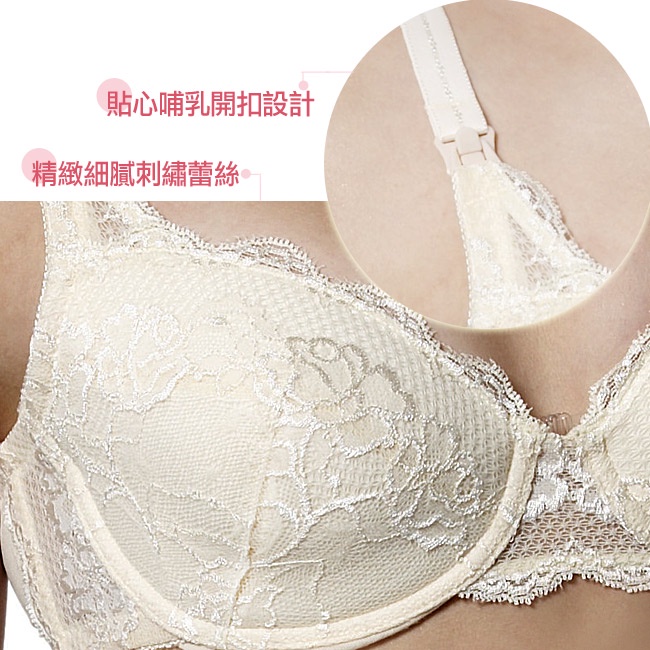 • 【Gennies 奇妮】不思翼蕾絲 美形深V軟鋼圈哺乳內衣-淡黃(GA14)