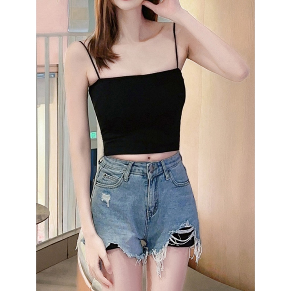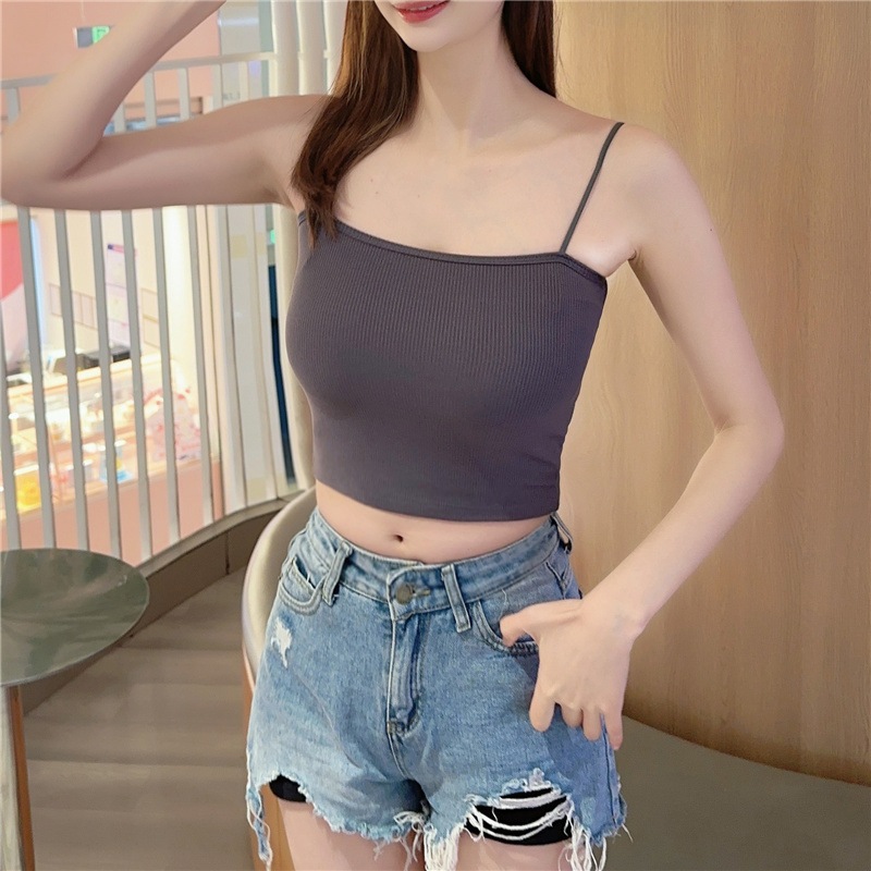 • 短款細肩帶小可愛 免穿內衣莫代爾內搭背心罩杯式 bra top小可愛 039866