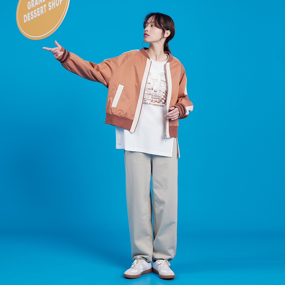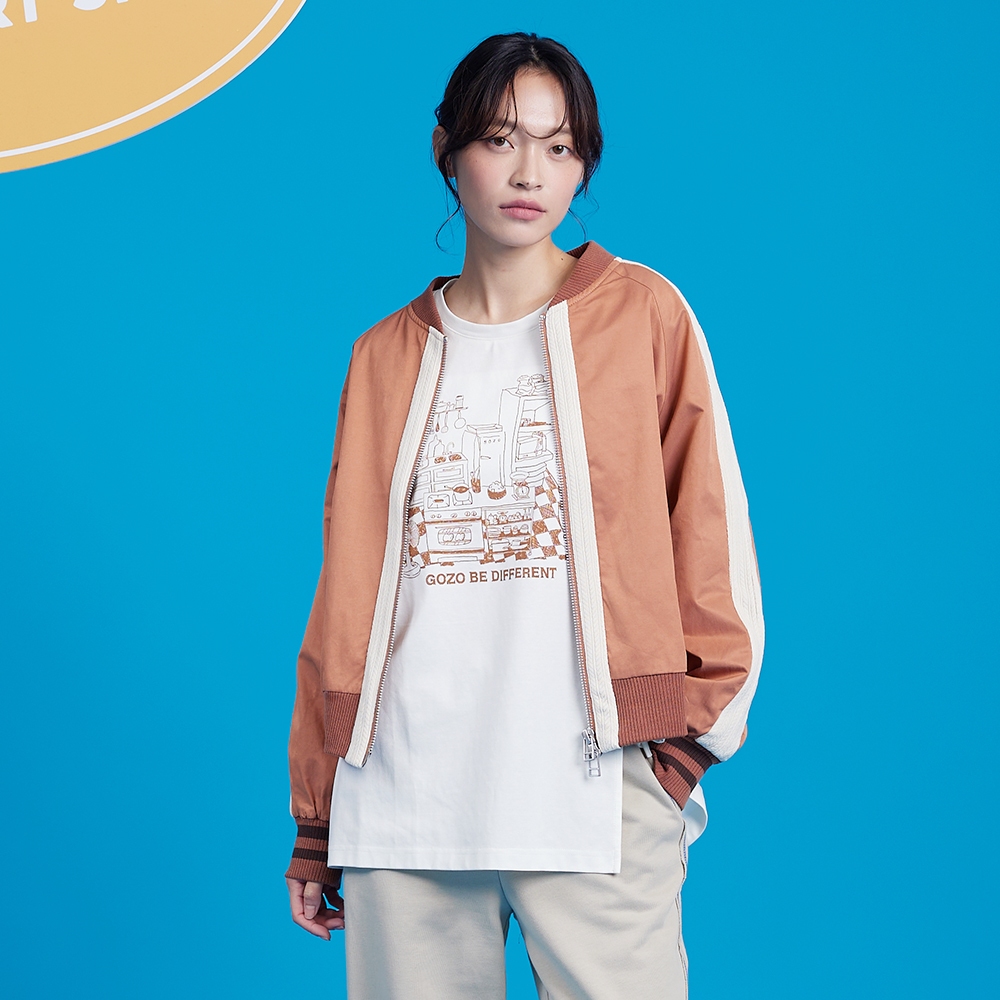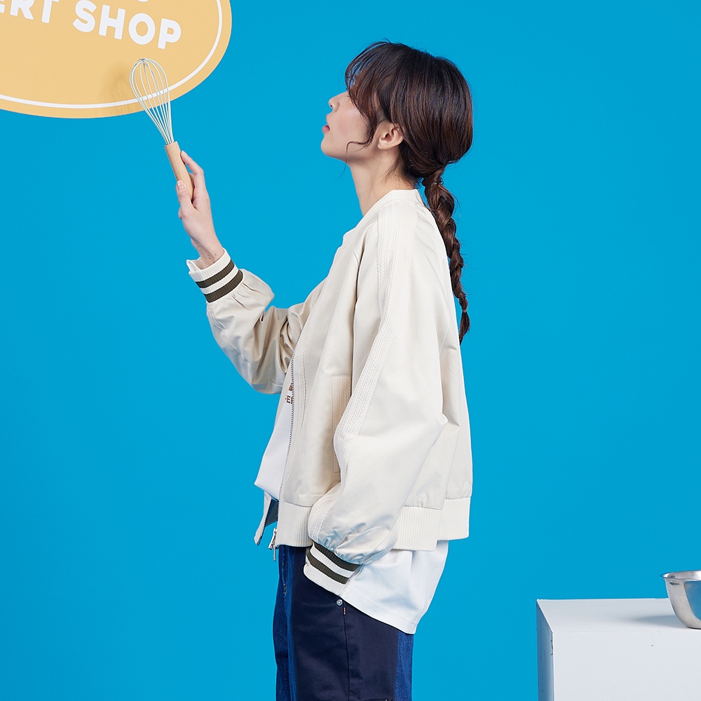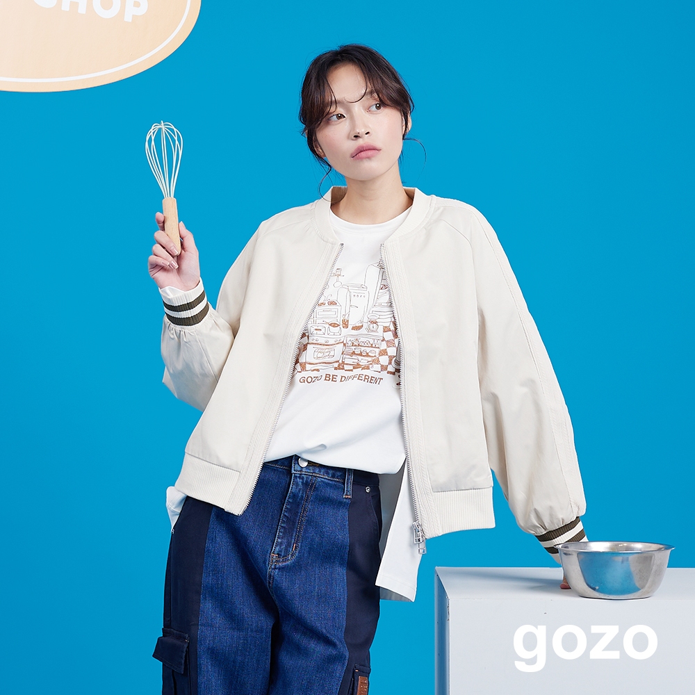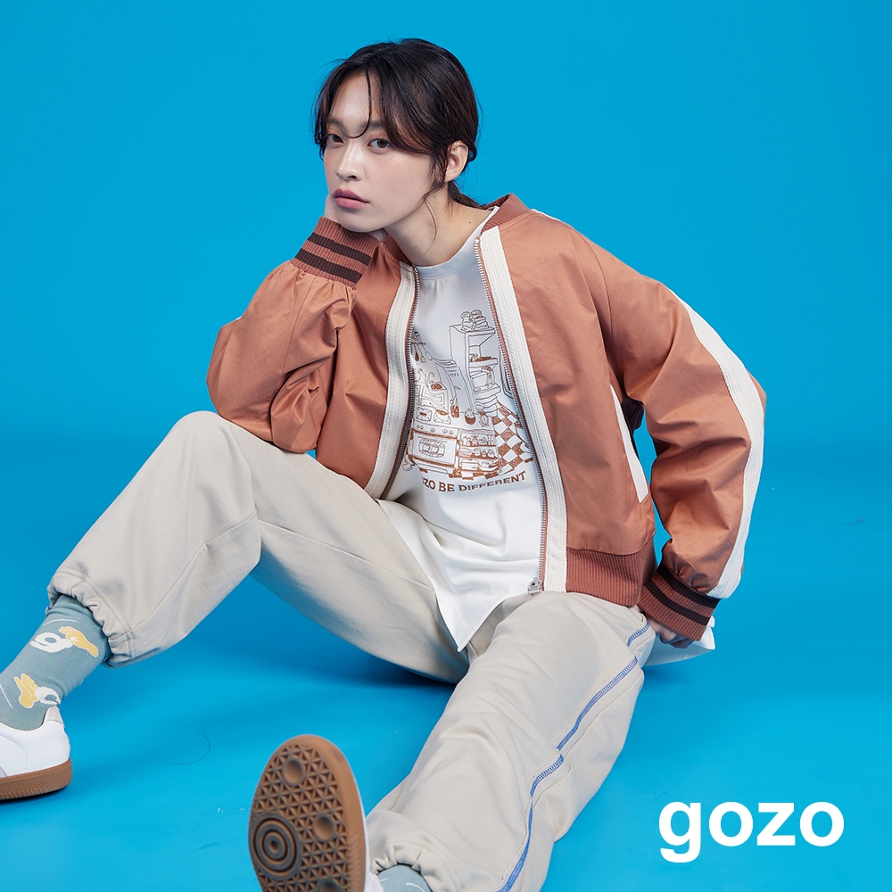 【gozo】➤麻花邊復古棒球外套(深桔/米白_F) | 女裝 顯瘦 休閒 飛行外套 棒球外套 復古 古著 外套深桔,F|米白,FJacketsgozo 品牌旗艦店