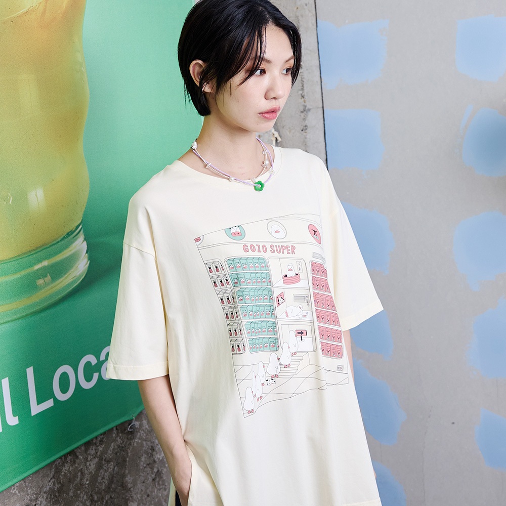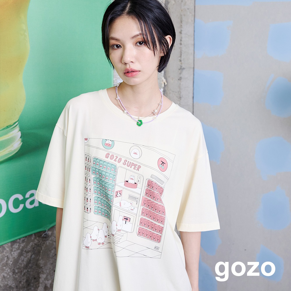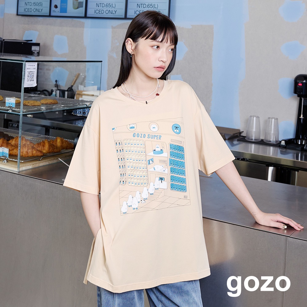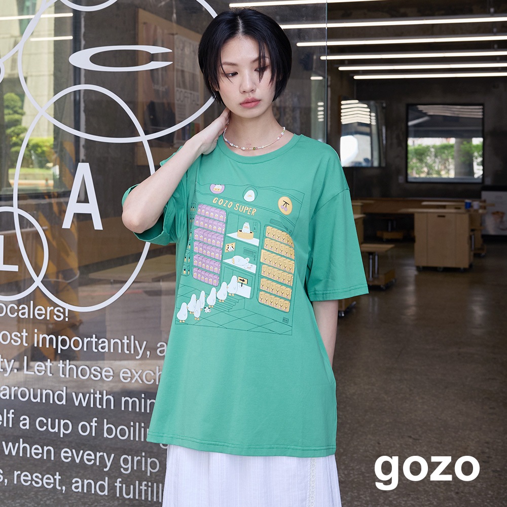 【gozo】➤超市排隊吹冷氣的鵝2.0寬鬆T恤(淺桔/米白/綠色_F) | 女裝 圓領 休閒綠色,F|淺桔,F|米白,FT-shirtsgozo 品牌旗艦店